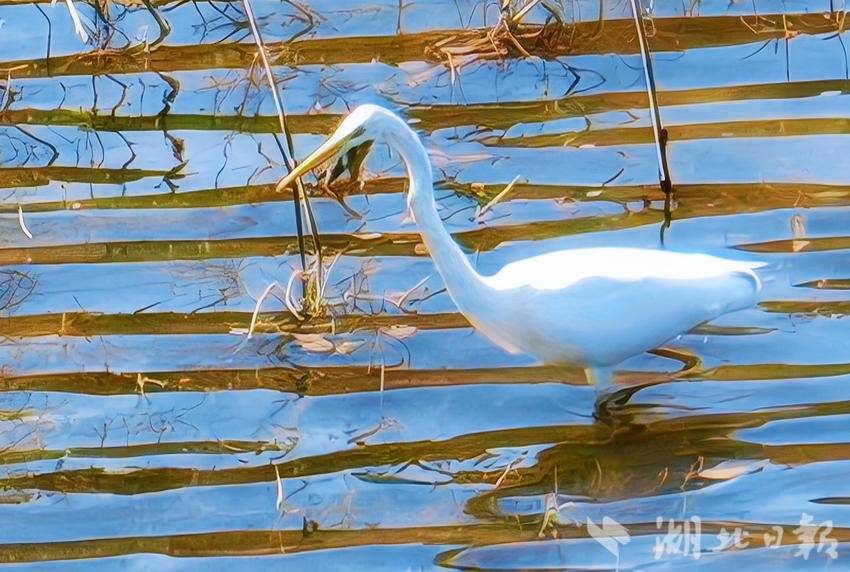 湖北日报讯(通讯员 许光泽)在“国际爱鸟日”到来之际,笔者在丹江口库区316国道浪河大桥上看到:桥上车辆川流不息,轰鸣震动声不绝于耳,一对绿头鸭旁若无人在约50米开外库水消落后的河滩休憩,不时有白鹡鸰、小鷿鷈与它们“同框”。水中,两只小鸊鷉自由自在潜水觅食。在稍早时候在同一地点拍到一只中白鹭在河滩或伫立或展翅,更早的时候拍到大桥上游八只小鷿鷈刚刚还在水面悠闲游弋,突然不约而同的踏浪起飞,一只凤头鸊鷉在水中悠闲游弋。浅水库岸,中白鹭涉水专注觅食,而大桥的路灯上,不时有喜鹊站立鸣叫,仿佛在为丹江口库区和谐生态家园“叫好”。