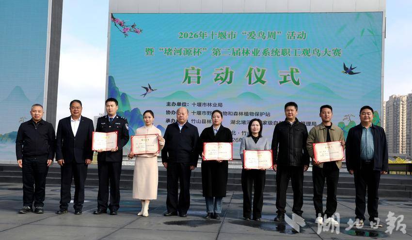 湖北日报讯(通讯员 袁海成)春满桃花源,飞羽竞翩跹。4月1日,2026年十堰市“爱鸟周”活动暨“堵河源杯”第二届林业系统职工观鸟大赛在湖北省十堰市竹山县桃花源女娲广场正式启动。来自全市自然保护地以及神农架、仙桃、谷城等地热爱观鸟的19支参赛队伍80余名观鸟爱好者齐聚堵河源,共同开启本次观鸟赛事。