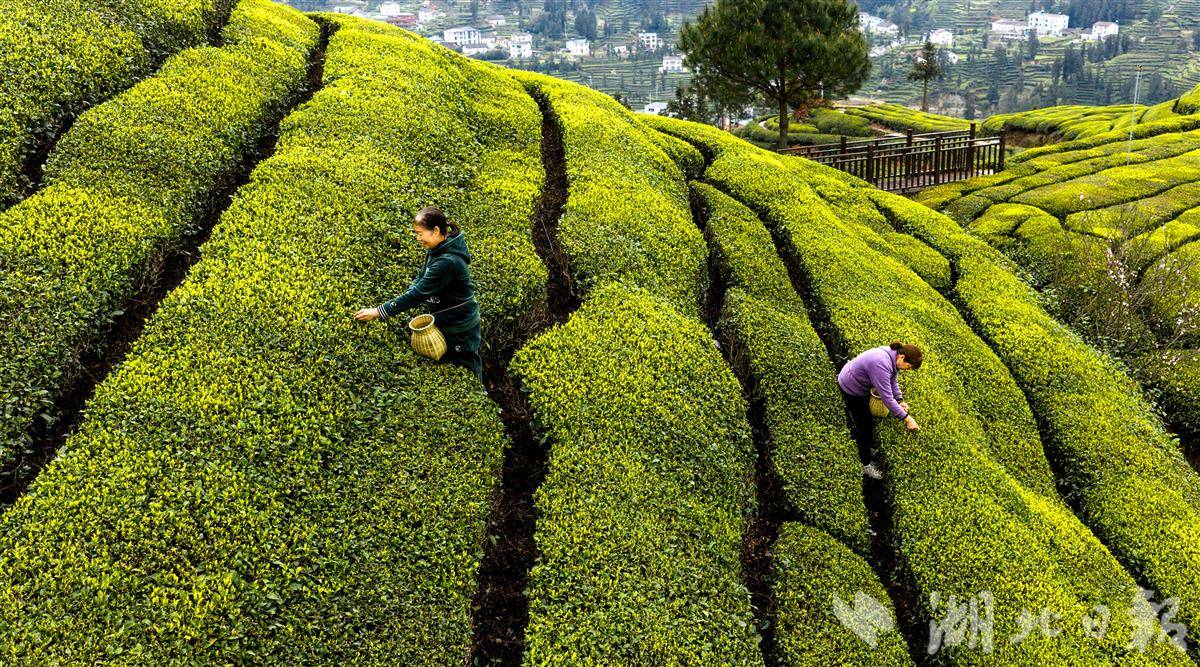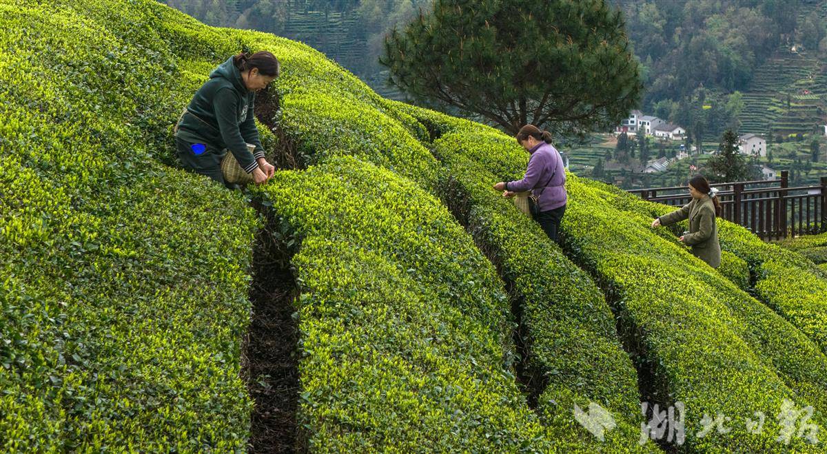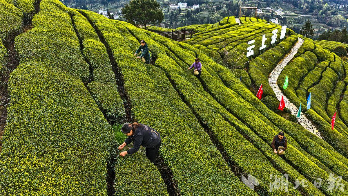 4月2日,宜昌市夷陵区邓村乡三峡茶旅小镇的高山生态茶园云雾缭绕,采茶工们指尖翻飞、紧张作业,全力抢采赶制明前茶。