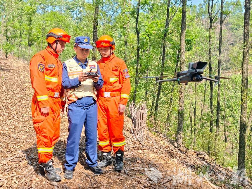 在咸宁市通城县,消防救援人员采取“空地联动”模式:无人机视角广、反应快,能第一时间发现违规用火行为;地面巡查组手持大喇叭和灭火器,沿山道逐片巡护,循环播放防火提示。鄂州消防联合湖北航空技术学校,组织专业飞手与消防员混编作业,无人机搭载高清摄像头和红外热成像,已累计派出80余架次,劝导制止违规用火30余起。