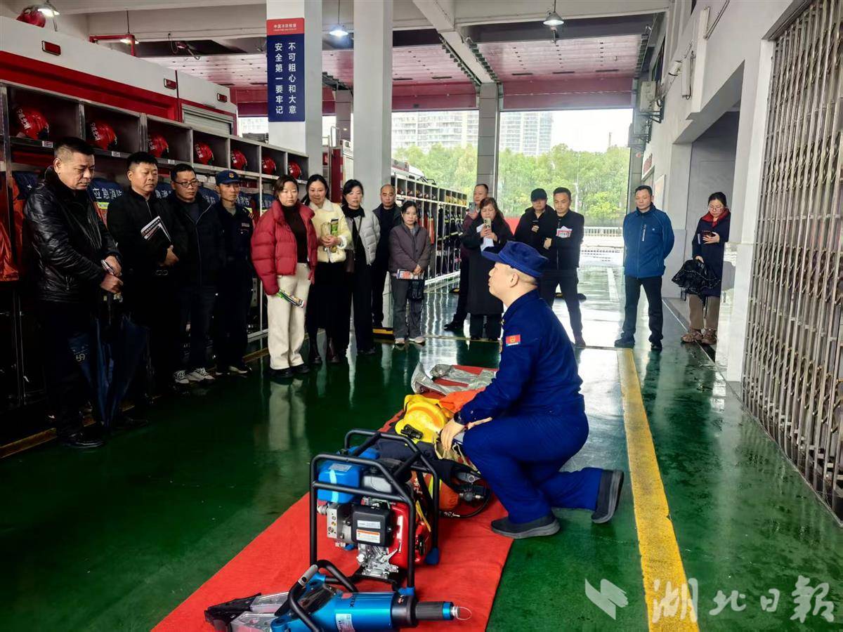 湖北日报讯 (记者童晨曦、通讯员李静书)“大家看,我手上拿的是空气呼吸器。救援时,除了穿灭火防护服,还得戴上它,防止吸入有毒浓烟。”近日,在咸宁市高新技术产业开发区消防救援大队营区内,消防救援人员向一群特殊的访客——辖区高层住宅小区的物业负责人,现场讲解各类消防装备的用途。