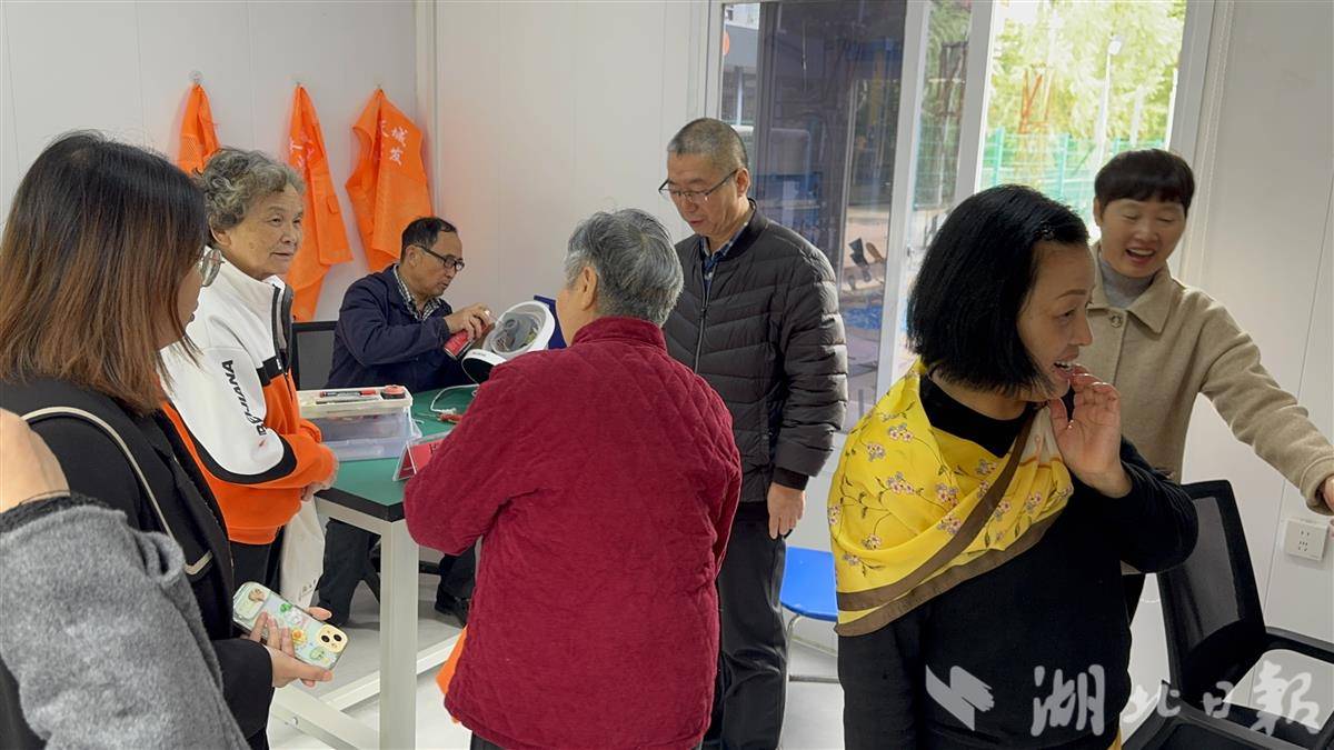 湖北日报讯(记者李光正、通讯员游红)“魏师傅,快帮我看看我这电热水壶怎么灯不亮了?”4月1日,武汉市武昌区南湖街道风华天城社区“橙房子”里,居民张阿姨带着“罢工”的电热水壶焦急求助。社区“橙管家共享维修志愿服务队”队长、流动党员魏军桥迅速排查,仅用十分钟便找出症结——一根松动的线路,随即娴熟修复。壶底指示灯重新亮起,张阿姨连声道谢。