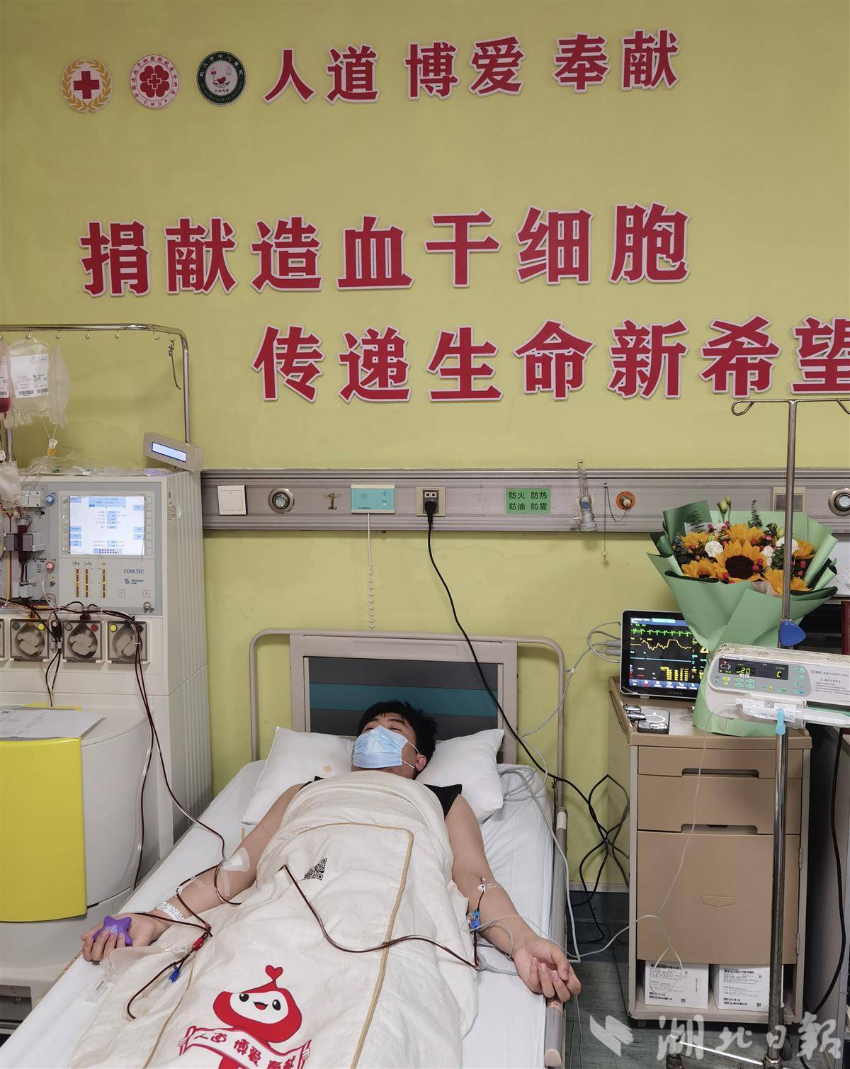 今年1月,他接到配型成功的消息时,毫不犹豫答应了捐献。4月2日,造血干细胞捐献顺利进行,李辉成功捐献了276毫升造血干细胞混悬液,成为全国第22547例、湖北省第781例成功捐献造血干细胞的志愿者。