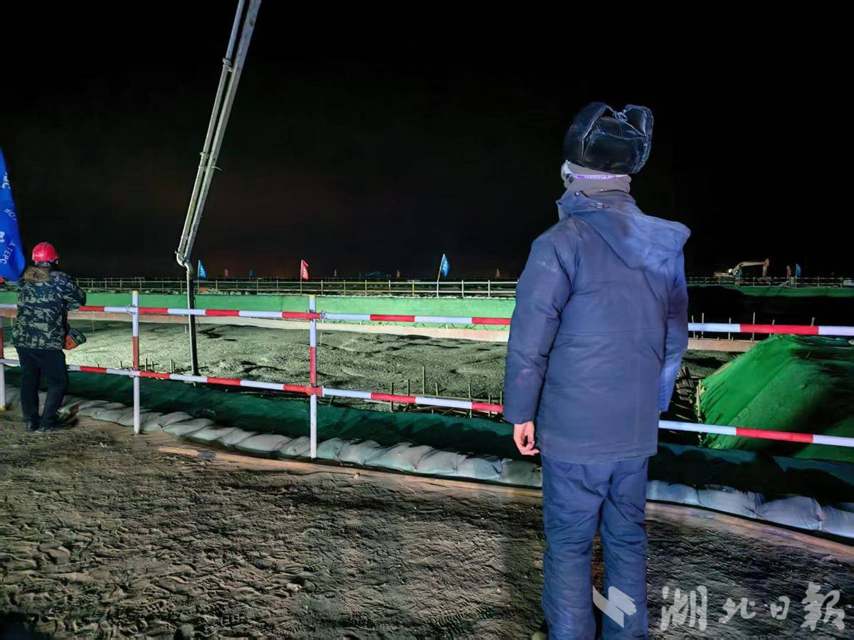 3月14日凌晨4时,城市还在沉睡,戈壁上的气温已降至冰点以下,一处浇筑现场,监理员杨宇中穿着厚重棉衣,已经站了好几个小时。他紧盯着施工的每一个环节:压实度够不够?振捣是否到位?标高控制准不准?专业的眼光扫过每一处细节,不放过任何潜在隐患。