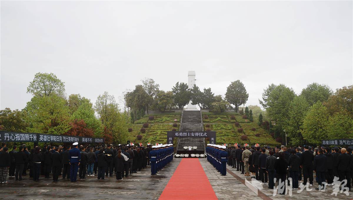 4月3日,邓勇烈士安葬仪式在宜都烈士陵园举行,社会各界人士列队肃立,送别烈士英灵,缅怀英雄壮举。
