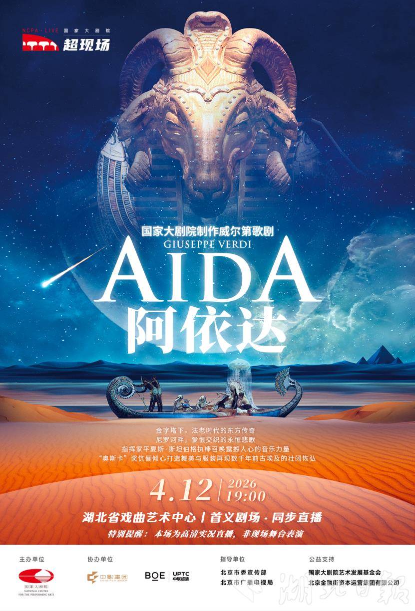 湖北日报讯(记者农新瑜、通讯员方方)从湖北省演出公司获悉,国家大剧院舞台艺术“超现场”项目将推出重磅剧目——威尔第经典歌剧《阿依达》。4月12日晚,该剧将在国家大剧院现场演出,并在全国上百家剧院同步高清直播。武汉首义剧场为全国直播剧场之一,届时本地观众可走进剧场,感受这场世界级的歌剧盛宴。