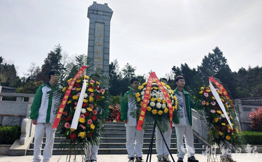 湖北日报讯(通讯员 许光泽、王珊珊、谢来云)“弘扬英烈精神,赓续红色血脉,发愤图强,强国有我!”雨后天晴,春和景明;松柏苍翠,红旗招展。4月3日上午,丹江口市金岗山烈士陵园迎来均州中学、市一中师生开展清明祭英烈活动。在苍松翠柏簇拥的烈士纪念碑前,全体师生整齐列队、肃立默哀,铿锵誓言响彻陵园,震撼心魄。大家高举党旗、团旗、校旗、班旗,敬献花篮;向烈士陵墓敬献鲜花,深切缅怀革命先烈。师生们依次走进英烈纪念馆,聆听英雄事迹,重温峥嵘岁月,接受红色精神洗礼。大家纷纷表示:铭记历史、传承精神,把爱国之志化为奋进之行,以青春担当践行强国使命!