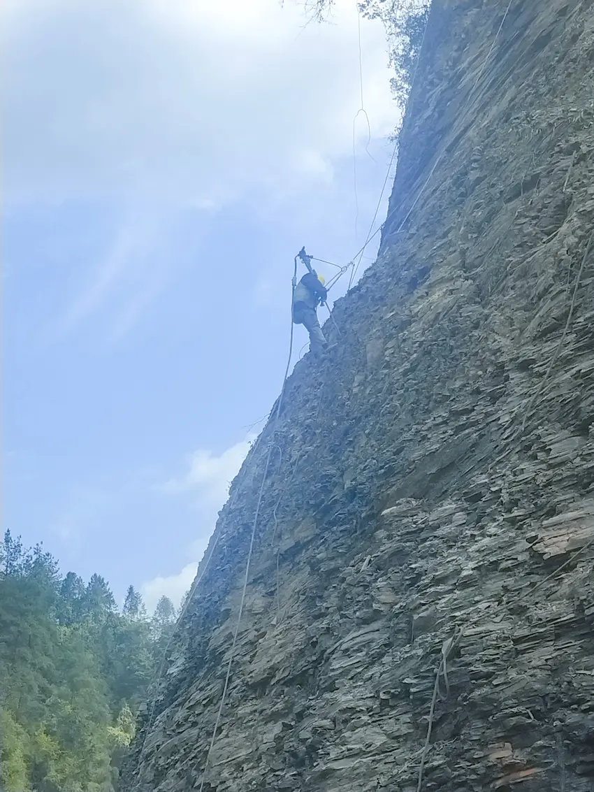 绝壁之上,风钻声在山谷间回响;绳索之下,工人们用汗水浇筑通途。这条寄托着山区群众期盼的民生路、发展路,正在建设者们的奋力拼搏中,即将从蓝图变为现实。