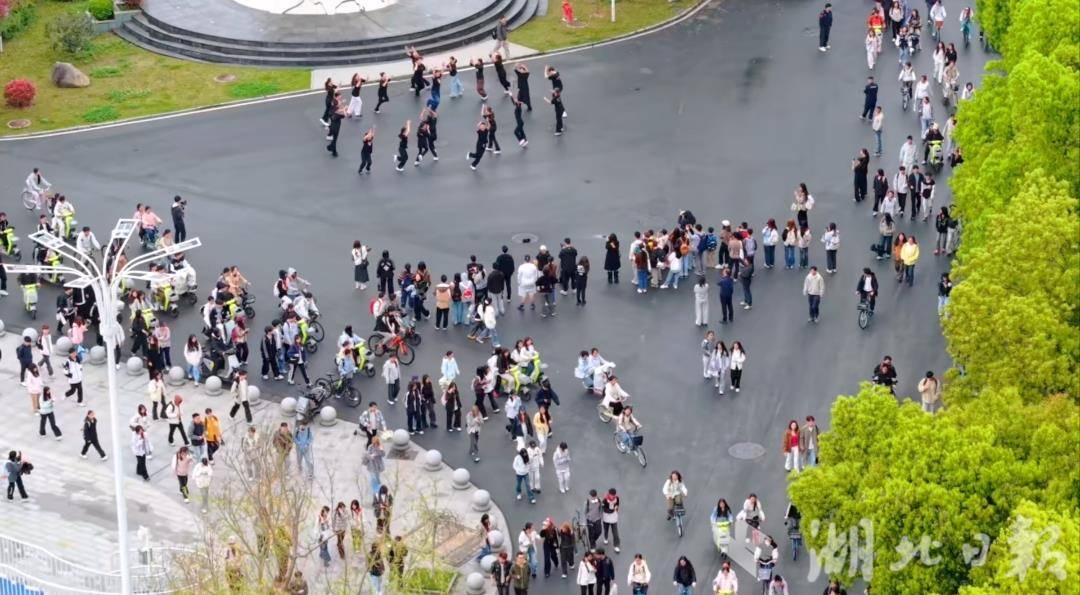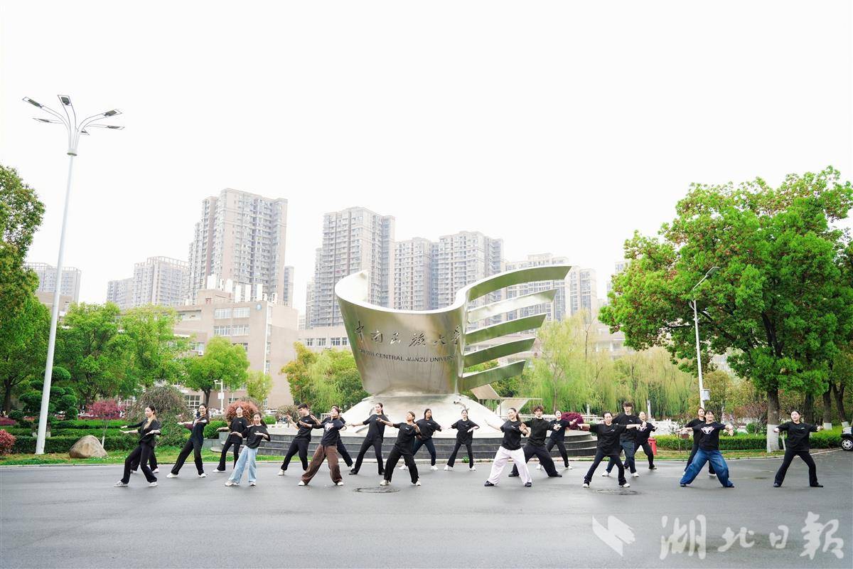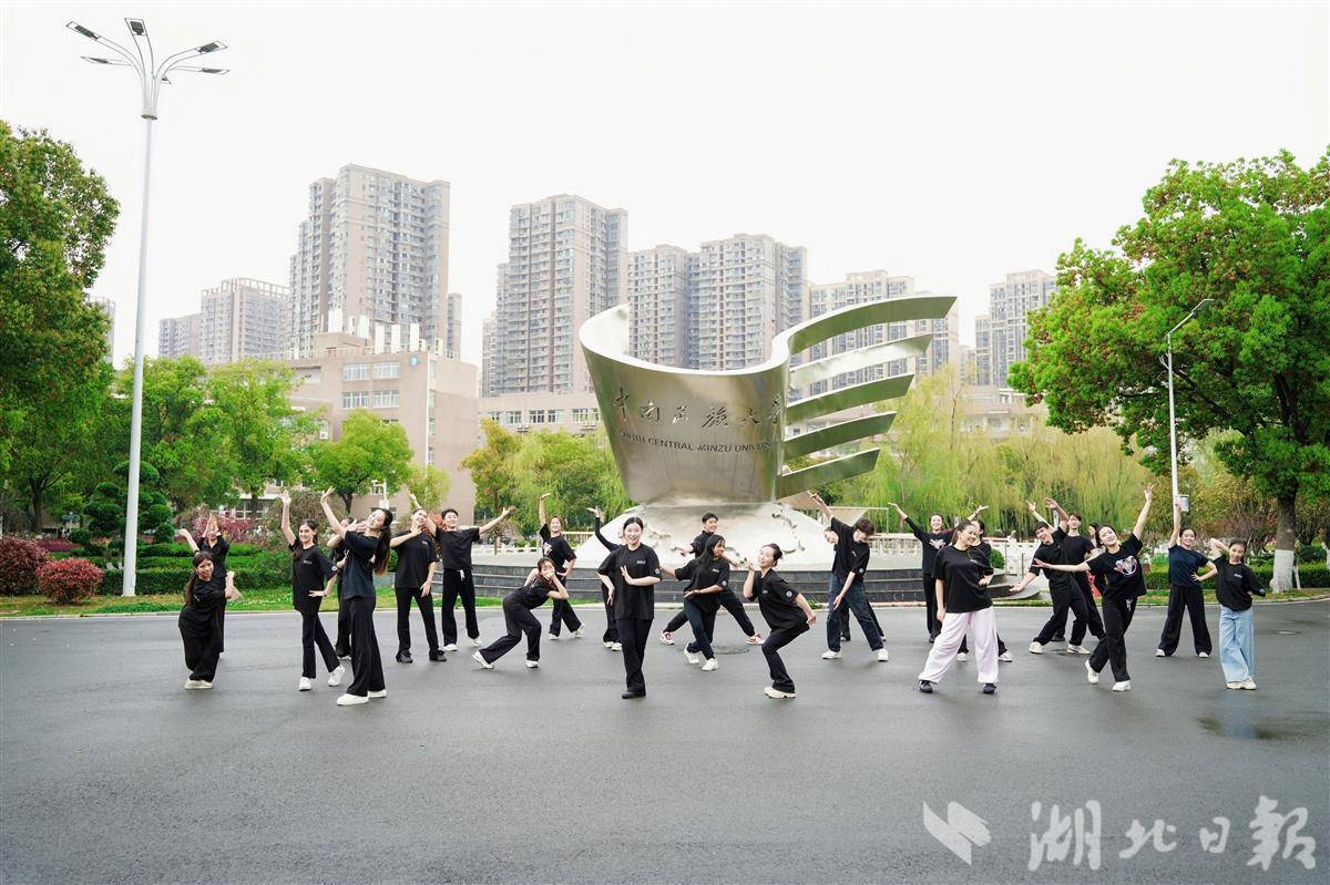 湖北日报讯(记者韩晓玲、通讯员陈韶月、张笑语)4月3日中午,中南民族大学“翔”雕塑前的广场上,中外学生联袂上演一场舞蹈快闪,青春飞翔,吸引了众多路过的师生驻足观看。