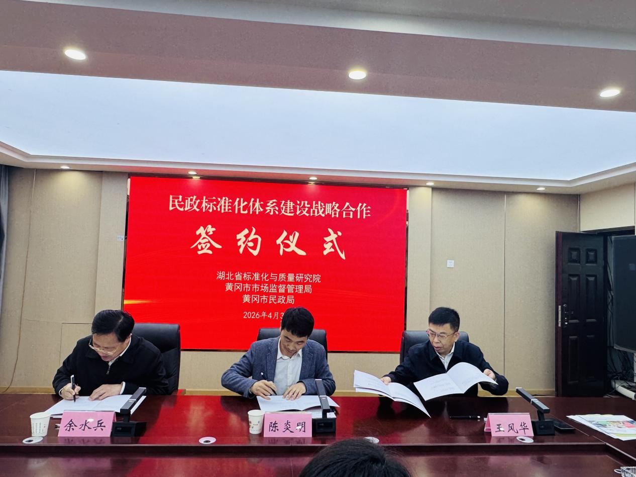 湖北日报讯(记者李光正、通讯员刘玉玲)4月3日,黄冈市民政标准化体系建设战略合作框架协议签约仪式在黄冈市民政局顺利举行。湖北省标准化与质量研究院、黄冈市民政局、黄冈市市场监督管理局三方签约,以标准化协同推进黄冈民政事业提质增效,为革命老区民生保障提质、社会治理现代化注入强劲动能。