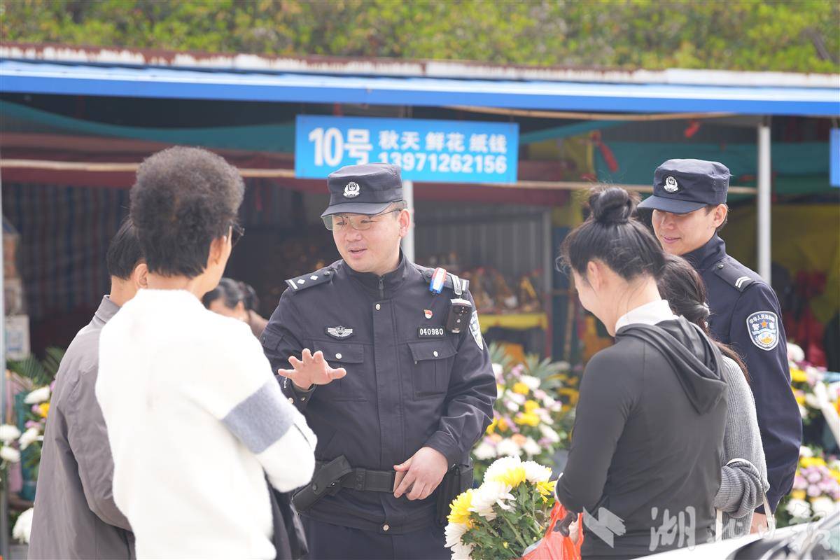 在黄陂区长乐园陵园,黄陂区分局交管大队与前川派出所联勤联动,全力开展周边交通疏导。执勤期间,陵园入口处两家商户因鲜花纸钱销售问题发生口角争执。前川派出所民警徐亮迅速上前制止,将双方分开后,通过讲事实、摆道理、释法律开展耐心调解,最终促成双方相互谅解,及时化解矛盾纠纷。同时,黄陂区分局环食药侦大队联合派出所警力在陵园内开展森林防火宣传,引导群众在指定区域规范焚烧祭祀物品,筑牢祭扫安全防线。