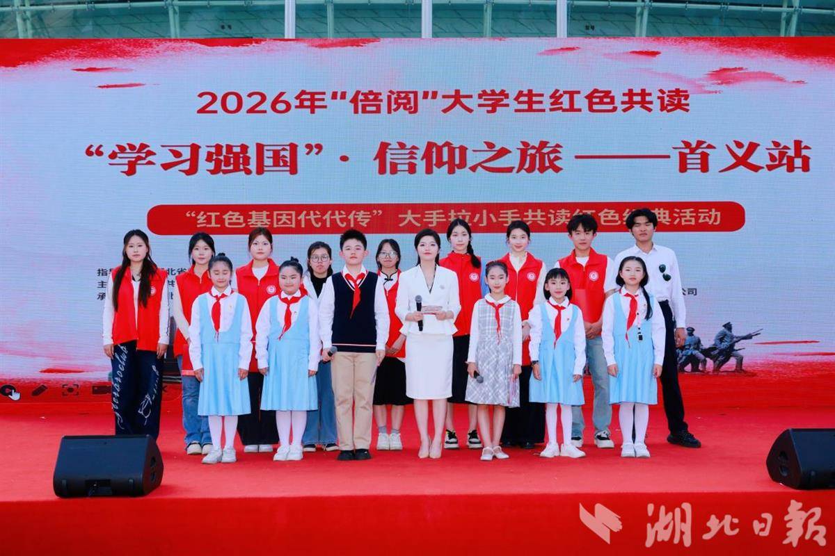 湖北日报讯(记者韩晓玲、通讯员丁晨曦、姜正会)4月4日下午,作为湖北省新华书店(集团)有限公司倾力打造的“倍阅大学生红色共读”品牌系列活动之一,“倍阅红色共读·‘学习强国’信仰之旅”走进2026长江书市·武汉童书展首义广场站。活动采用“红色研学+情景演绎”的创新形式,将红色文化、思政教育与情景阅读深度融合,大中小学生共上一堂“行走的思政课”。
