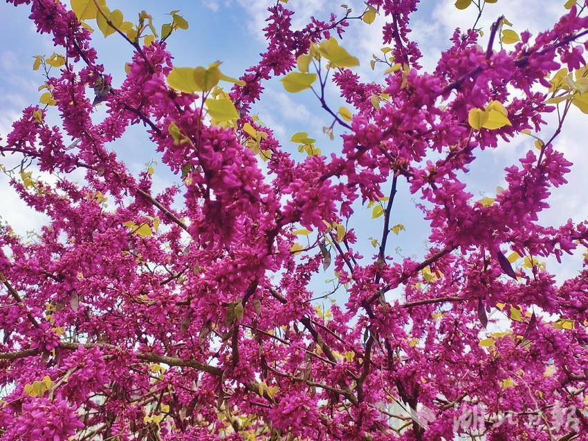 4月4日,在咸丰县城一绿化带中,一株紫荆花迎来了盛花期,密密麻麻的紫色或粉红色小花挤满了枝丫,使整株植物光彩夺目,极具诗情画意,因其叶互生呈心形或圆形,像亲密无间的两兄弟,又被赋予“兄弟树”的美誉。