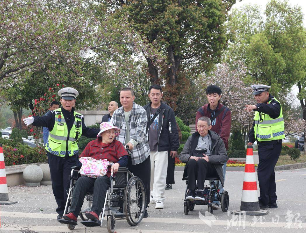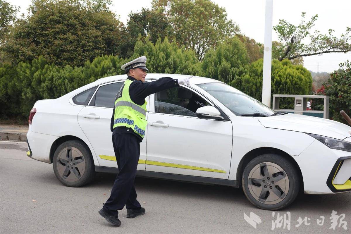 上午9时,车流高峰如期而至。刘勇站在路口中央,哨声清脆,手势利落,指引着车辆。忙碌中,他注意到一对老夫妻搀扶着缓慢行走。老奶奶腿脚不便,每走几步就要歇一歇。刘勇快步上前询问,原来二老从武昌坐公交赶来,从公交站走到园区门口已歇了好几回。