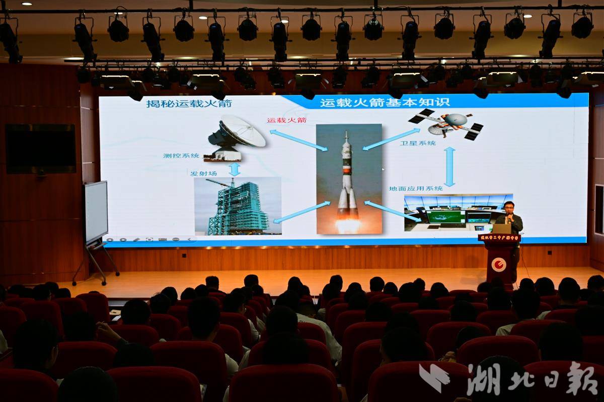 科普讲座环节,来自湖北火箭公司的主任设计师杜林霏,以《揭秘运载火箭——人类进入太空、利用太空的阶梯》为主题,为同学们带来了一场深入浅出的分享。杜林霏从航天发展的意义、运载火箭的基本知识、发展历程、我国运载火箭成就及未来展望等方面展开,用生动的案例和通俗的语言,讲解了火箭的原理、分类及应用,重点介绍了我国长征系列火箭的发展历程,以及武汉造快舟系列火箭的特点与成就——快舟一号甲作为小型固体运载火箭,具备入轨精度高、准备周期短、发射成本低的优势,已成功发射31次,创造了单日两发、短周期密集发射等多项纪录;快舟11号运载能力更强,且正探索垂直起降、重复使用技术。
