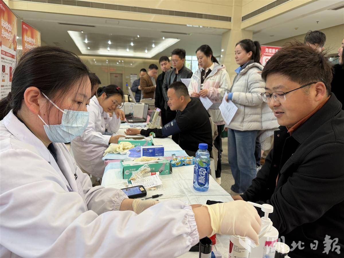 湖北日报讯(记者曾莉、通讯员肖莉娇)3月24日,一场主题为“热血暖三月,爱心满国创”的无偿献血公益活动,正在江夏区武大园三路的国创高科实业集团大楼举行。据统计,当天共有30多名员工报名参与,最终19人成功献血,献血量4800毫升。