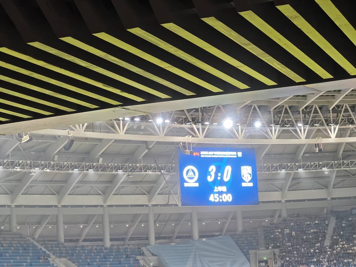上半场结束,武汉三镇队客场暂时以0比3落后深圳新鹏城队。(湖北日报全媒记者 蔡毅 摄)