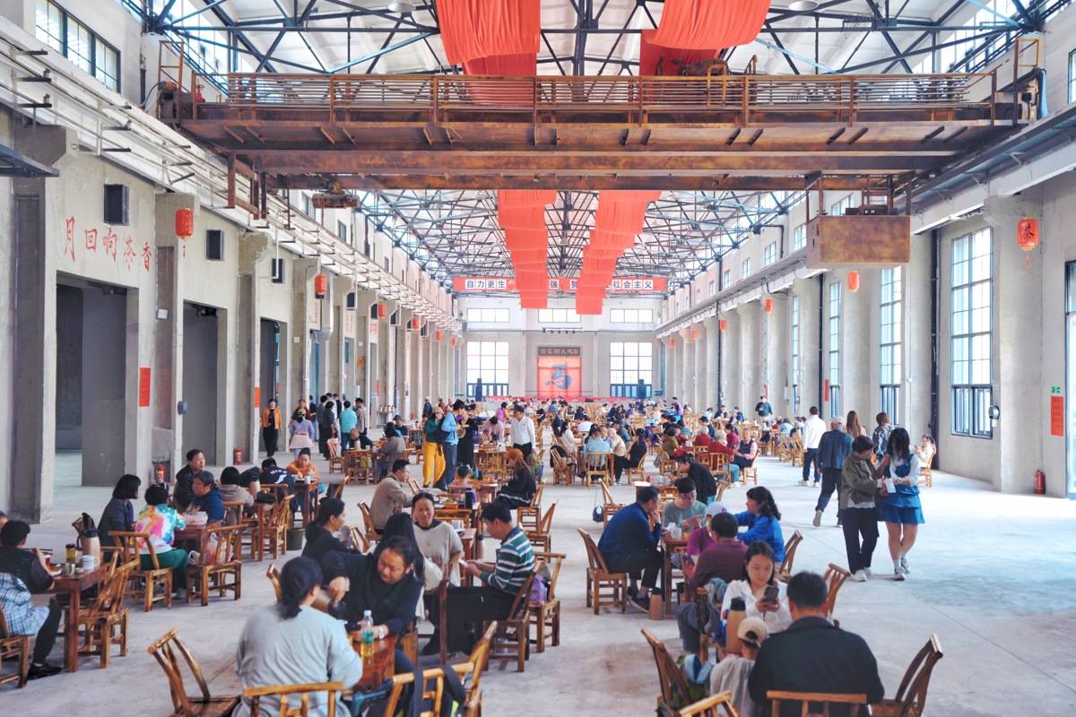 4月4日,武汉武昌四美塘铁路遗址文化公园内,由老厂房改造的徐家棚老茶馆走红。茶馆保留红砖墙、旧标语等工业风貌,近3000㎡空间复古质朴。湖北名茶、平价小吃、热干面等一应俱全,老街坊与年轻人同座品茶、听戏闲聊,烟火气十足。昔日铁路厂区变身城市“公共客厅”,成为城市更新与文化传承的新样本。(视界网 王良圆 摄)