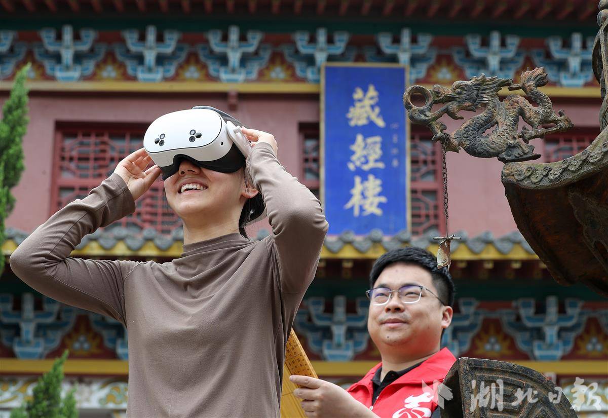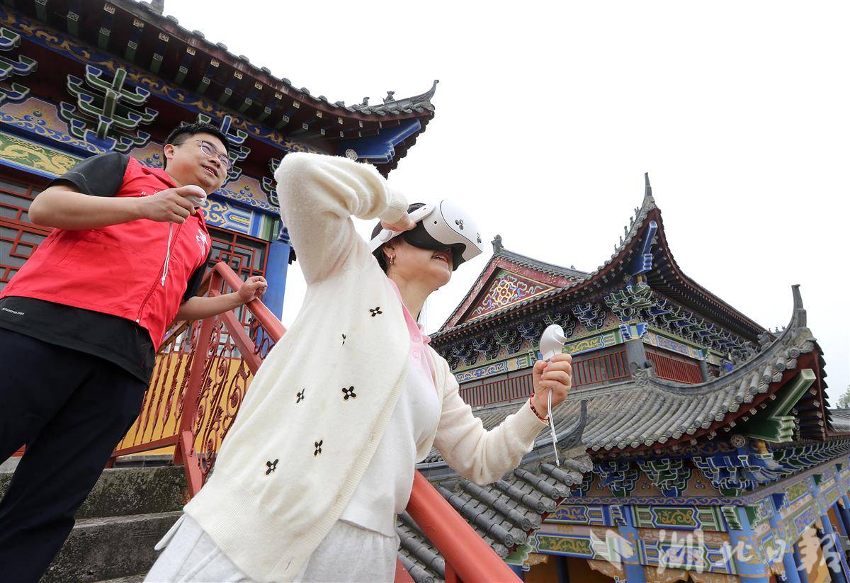 4月6日,在荆门市沙洋县纪山镇千年古刹纪山寺,游客戴上VR眼镜,瞬间“穿越”至战国楚地,见证楚简从选材、书写到封存的完整制作过程。当天,荆门市博物馆开展“流动博物馆”进景区活动,通过复刻文物展陈、VR沉浸式体验、数字化解读等多元形式,将郭店楚简、虎座鸟架鼓等珍贵文物,转化为可触摸、可互动的鲜活历史场景。