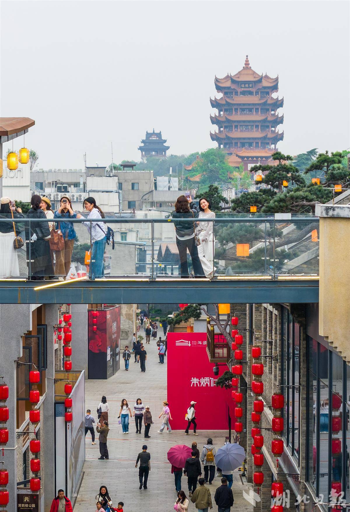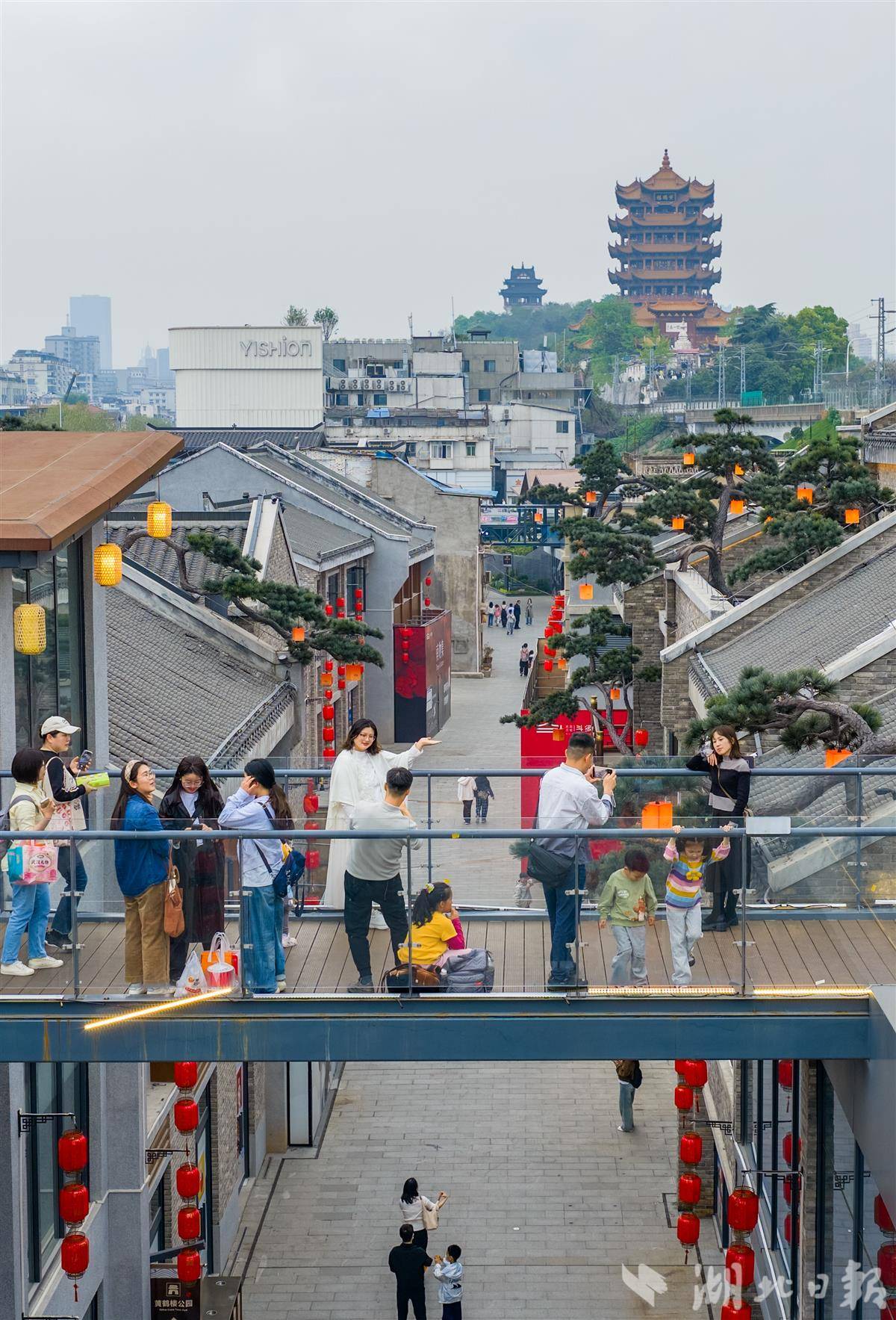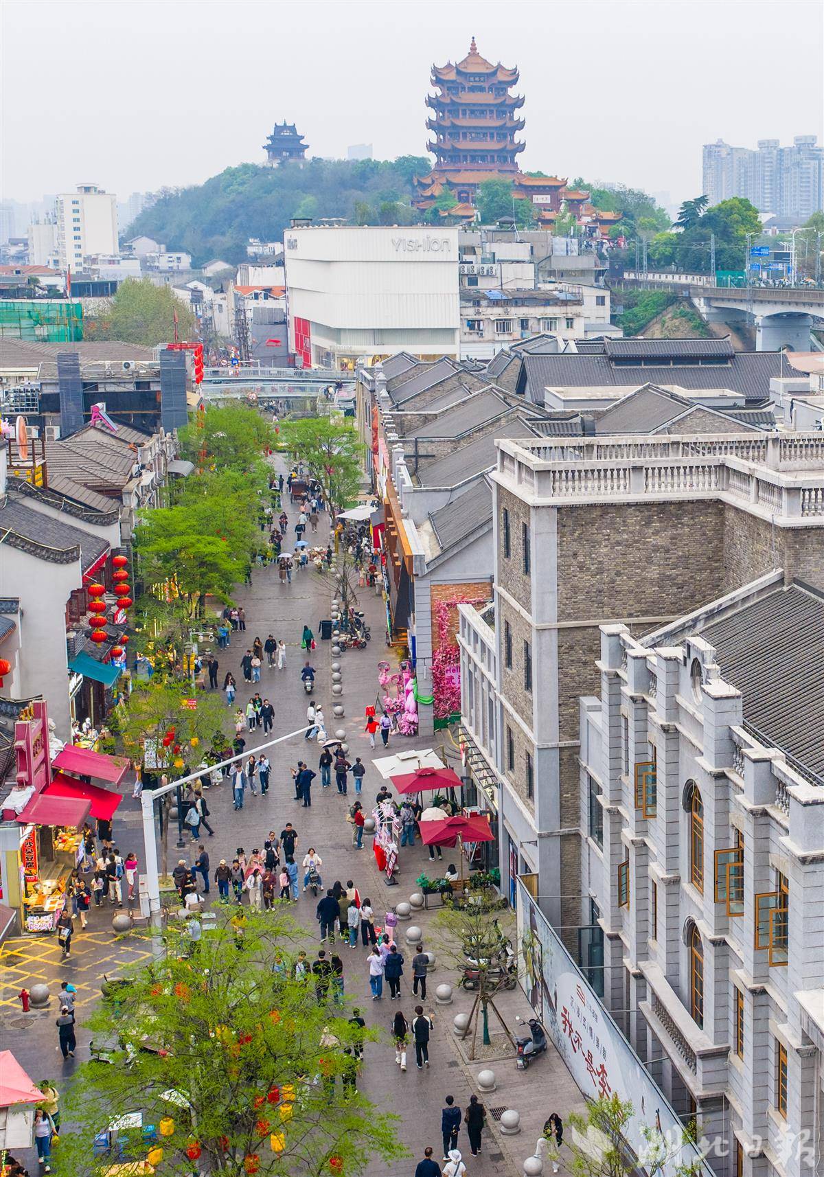 与黄鹤楼同框!游客打卡武昌古城斗级营