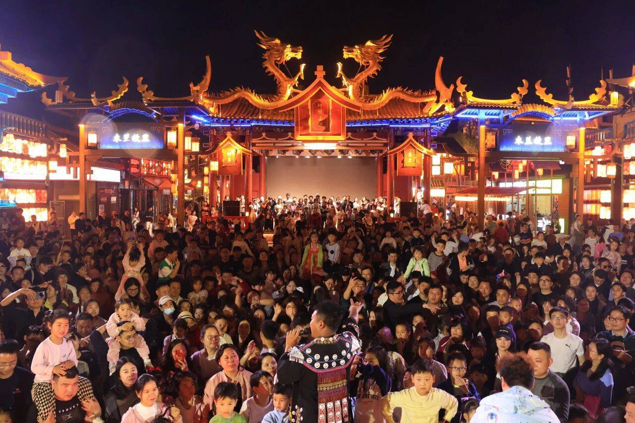 民俗点亮让夜间消费更具烟火气。恩施土家女儿城红灯笼连片成景,民俗表演、特色市集人气鼎盛,夜间客流占比超60%,直接带动县域住宿、餐饮、文创消费快速增长;十堰房县西关印象、丹江口“水都花月夜”等夜游街区人气爆棚,成为年轻游客与亲子家庭聚集地,民俗文化与夜间消费深度融合,释放强劲活力。