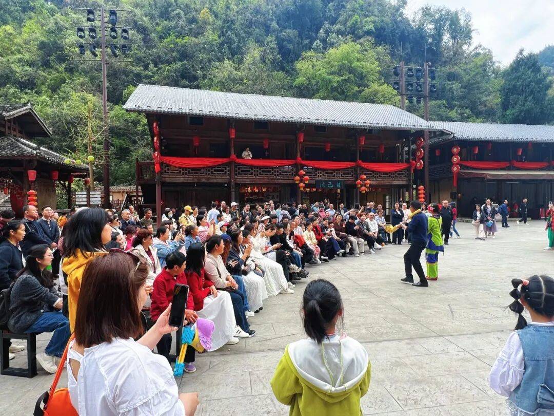 车溪景区民俗表演精彩上演,游客争相观看互动,沉浸式感受非遗文化魅力。