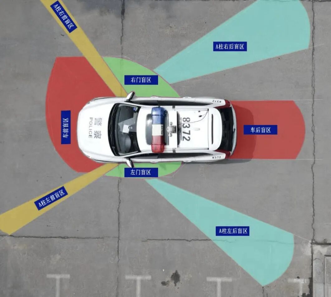 所谓车辆盲区,就是驾驶人位于正常驾驶的位置,其视线被车体所遮挡不能够直接观察到的那部分区域。一旦进入车辆盲区,在车辆启动、转弯瞬间,行人、非机动车极易被“吞噬”。