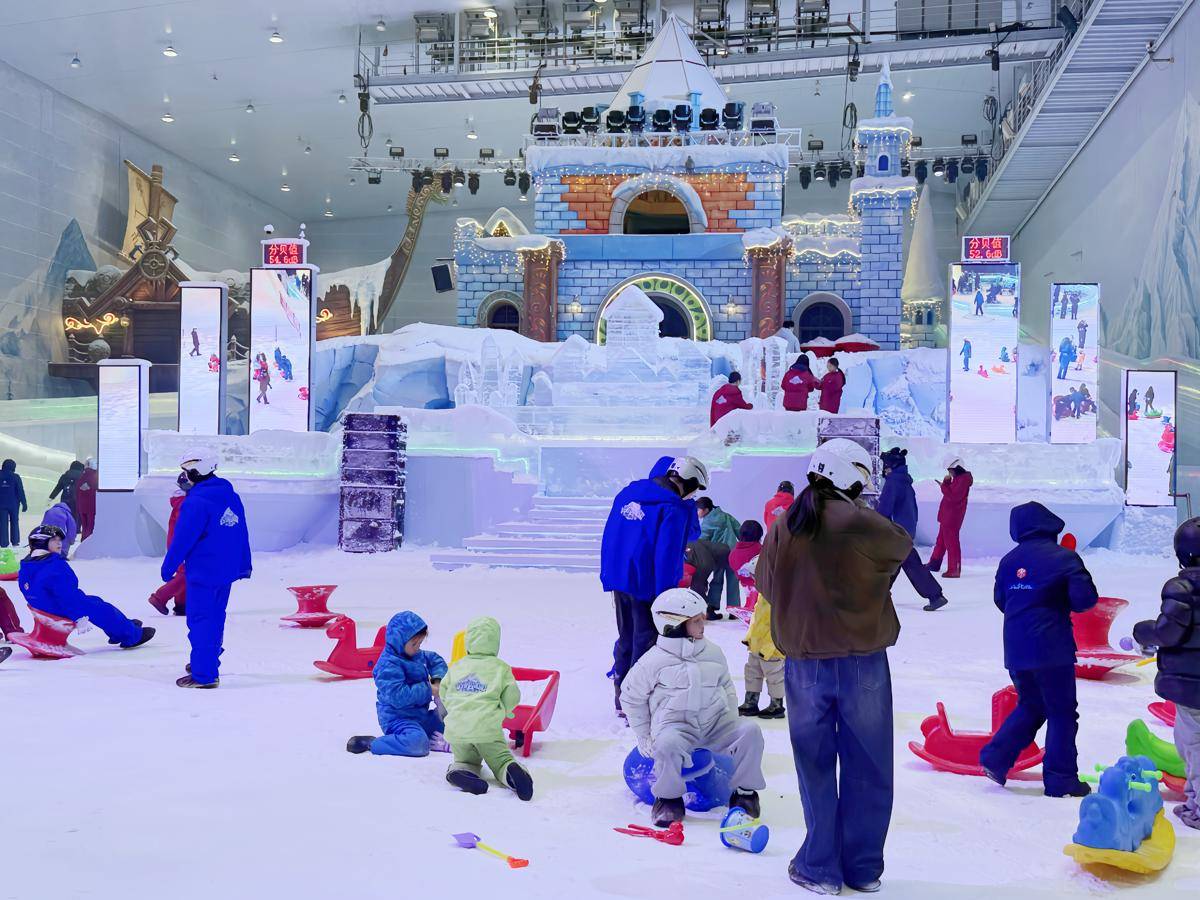 清明假期,众多市民游客在WS热雪奇迹体验滑雪。