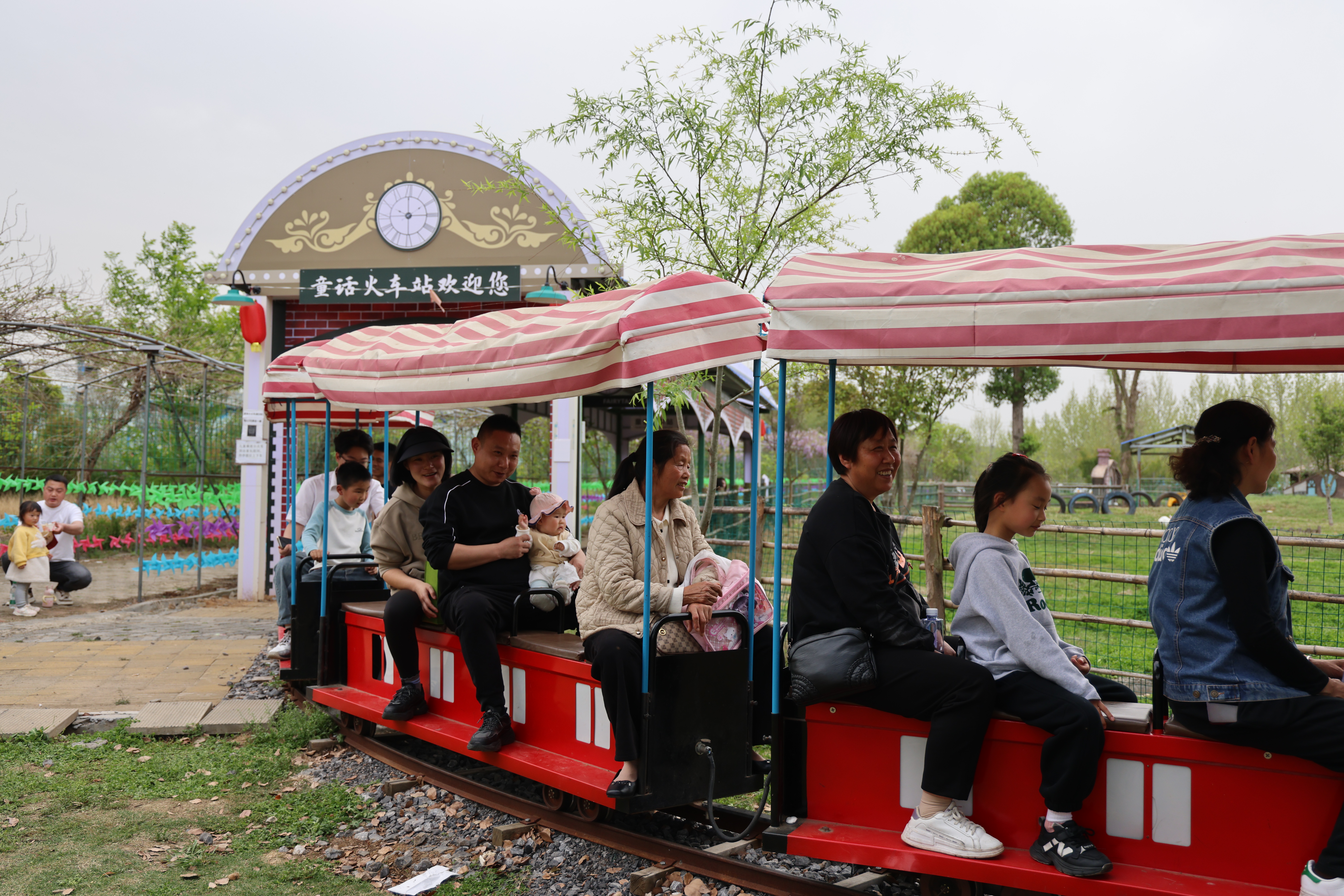 “从武汉回来,专门带小朋友来玩。坐了网红小火车,还在大灶台烧了顿饭,孩子玩得不想走。”游客望灵一边给孩子擦汗一边笑着说。