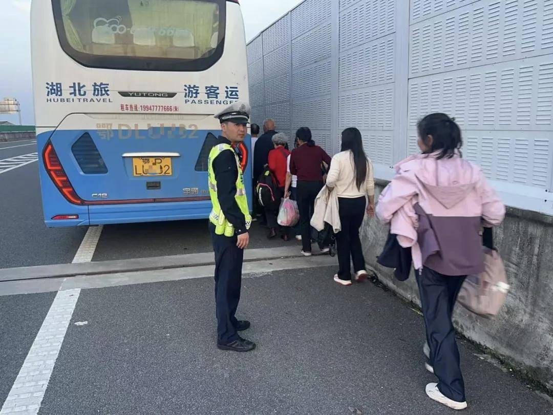 荆州交警转运故障车辆乘客。