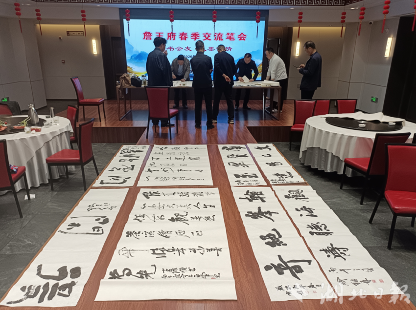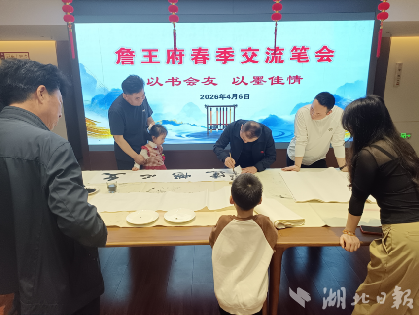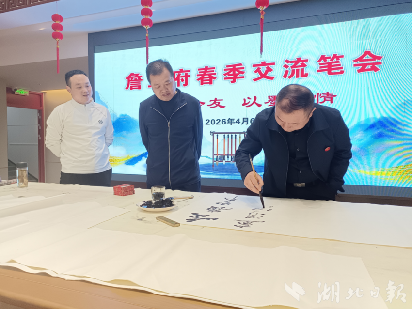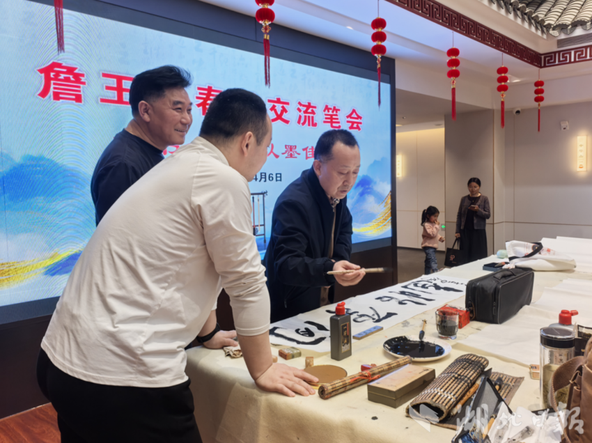 湖北日报讯(通讯员刘小斌、尹艳、童菲菲)清明时节,墨香四溢。4月6日,一场以“以书会友、以墨传情”为主题的春季笔会交流会在广水詹王府温情启幕。福建省书法家王奇峰与广水本地书法家们齐聚一堂,挥毫泼墨、寄情笔端,在一撇一捺间弘扬传统文化,为春日广水增添了浓郁的艺术气息。