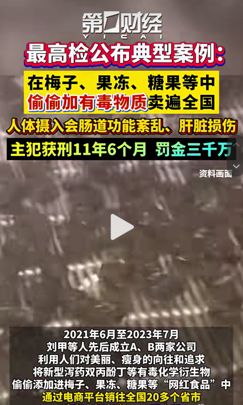 最高检于今年3・15 前夕,曝光了一起以“瘦身”为噱头、非法添加新型泻药成分的网红零食大案。