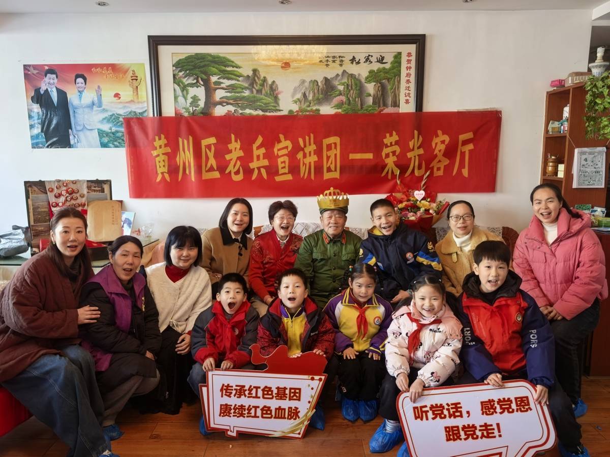 与往年不同,黄州区今年创新打造“老兵荣光客厅”,将宣讲阵地从报告厅延伸至老兵家中。首场活动走进90岁抗美援朝老兵钟度阶家中,志愿者和孩子们围坐在老人身旁,听他讲述烽火岁月中的战斗故事与中朝友谊。大家一同包饺子、唱生日歌,新老两代“宣讲员”温暖互动。这一模式旨在挖掘老兵宝贵精神财富,打造“家门口”的红色课堂。