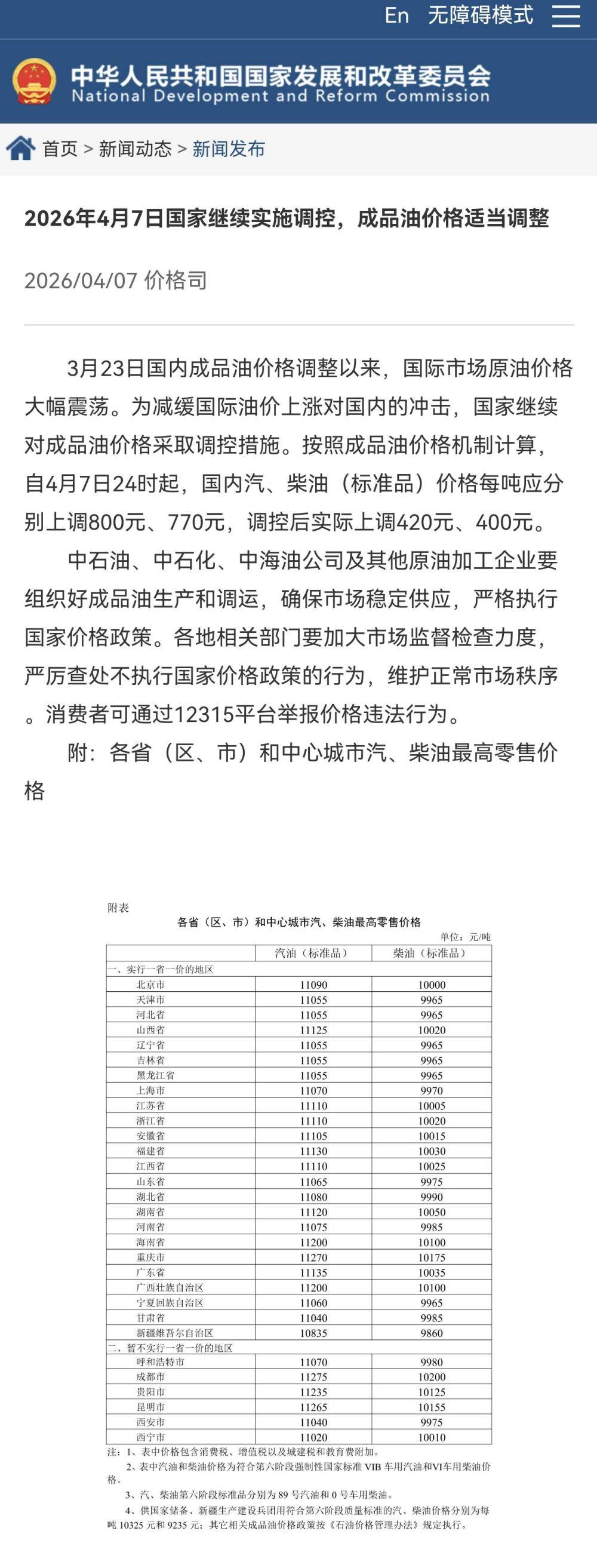 原标题:2026年4月7日国家继续实施调控,成品油价格适当调整