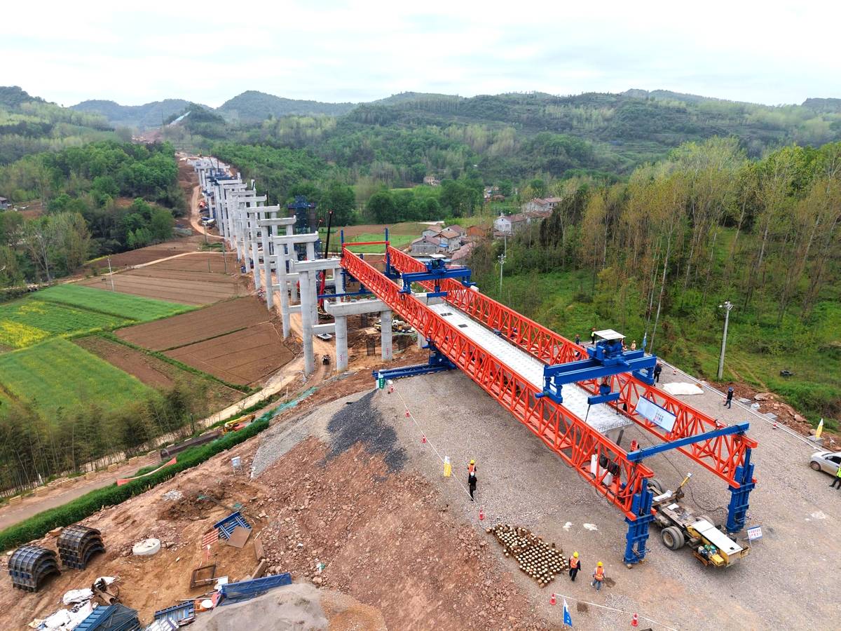 平宜高速襄阳段全长55.708千米,设置各类桥梁61座,需预制梁板4313片。首片箱梁成功架设,标志着项目桥梁下部结构与上部结构施工进入平行推进的新阶段。