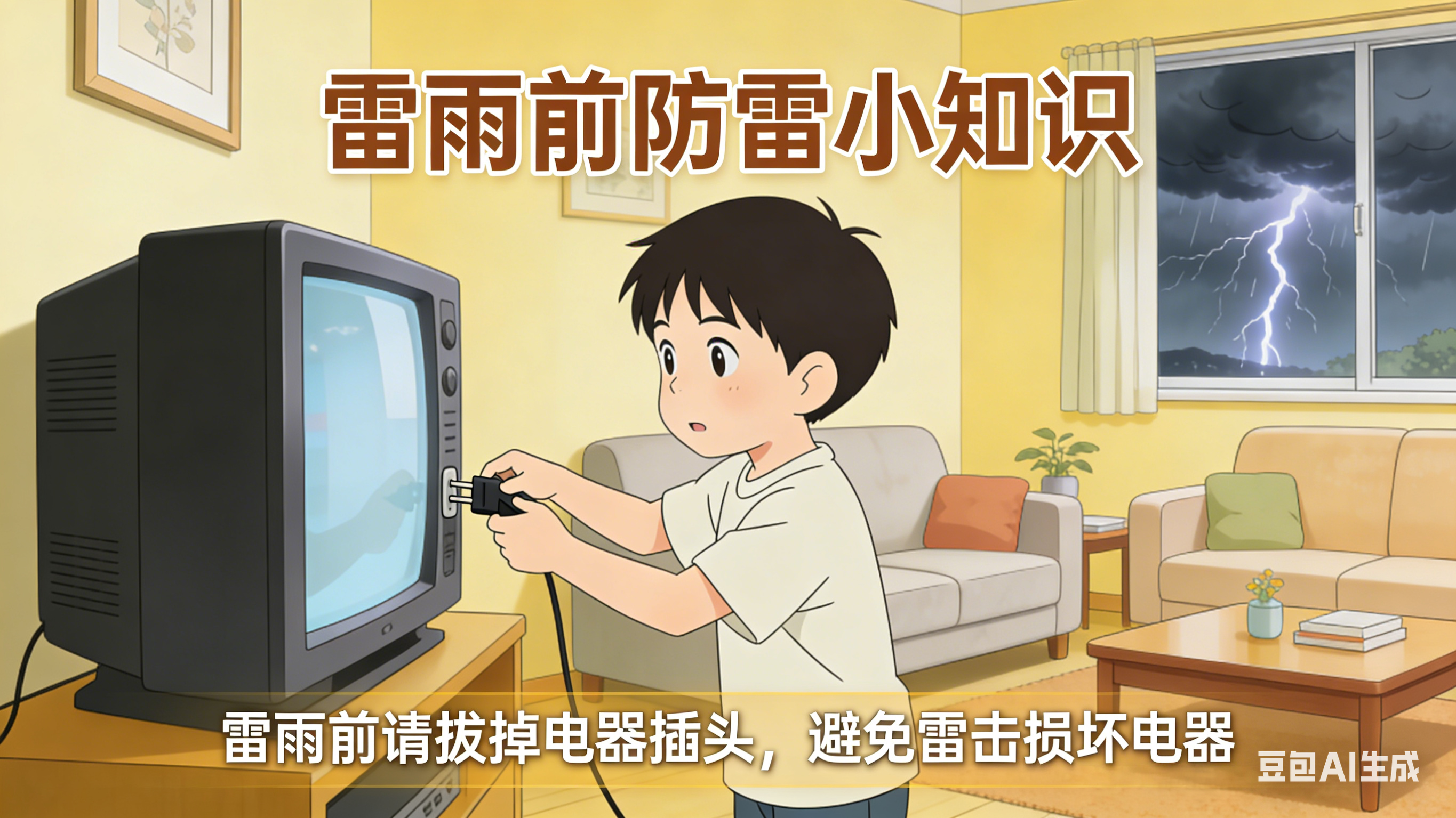 雷电易通过电源线、网线、电视信号线等侵入室内,损坏电器甚至引发火灾。雷雨天气应提前关闭所有家用电器,包括电视、电脑、冰箱、空调、热水器、洗衣机等,并彻底拔掉电源插头,不要仅关闭电器开关;不使用固定电话、不连接充电设备、不操作带电设备,从源头阻断雷电入侵通道。