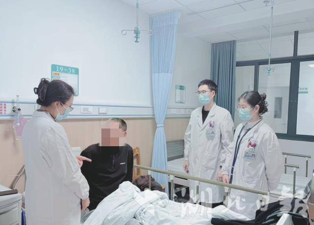 医生在陈先生病床前进行健康宣教。(受访单位供图)