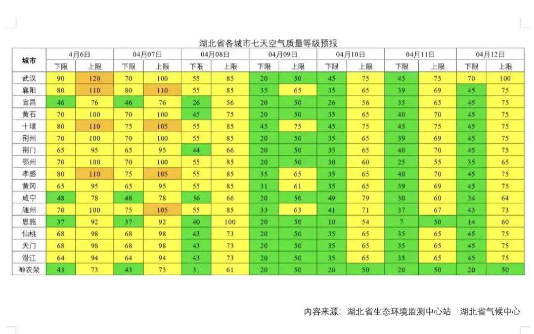 湖北日报讯(记者刘郸、通讯员李斌)4月6日,湖北省生态环境监测中心站、湖北省气候中心发布最新空气质量预测:8日至9日我省有一次较明显降水过程、伴有强对流天气;10日至11日大部分地区有降水发生,大部分时段空气质量优良。
