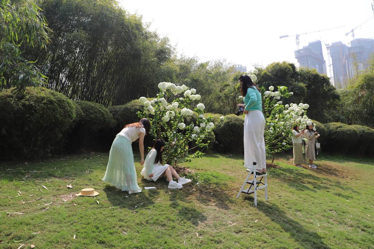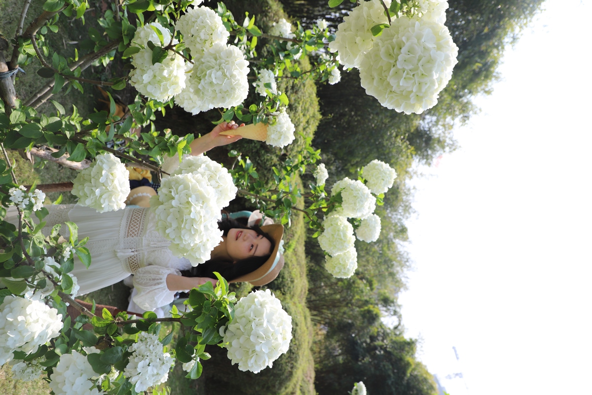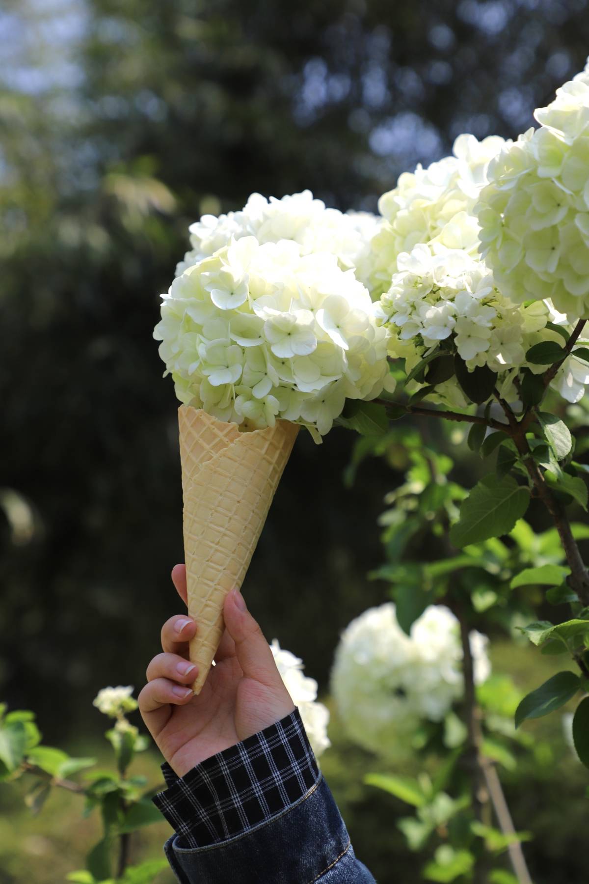 追花人、网友“小布麻麻”约着两个闺蜜一起来拍摄绣球花照片,她告诉记者,木绣球花期集中在整个四月,是春天限定的“顶流”,利用书本和冰淇淋蛋筒等道具,非常出片。