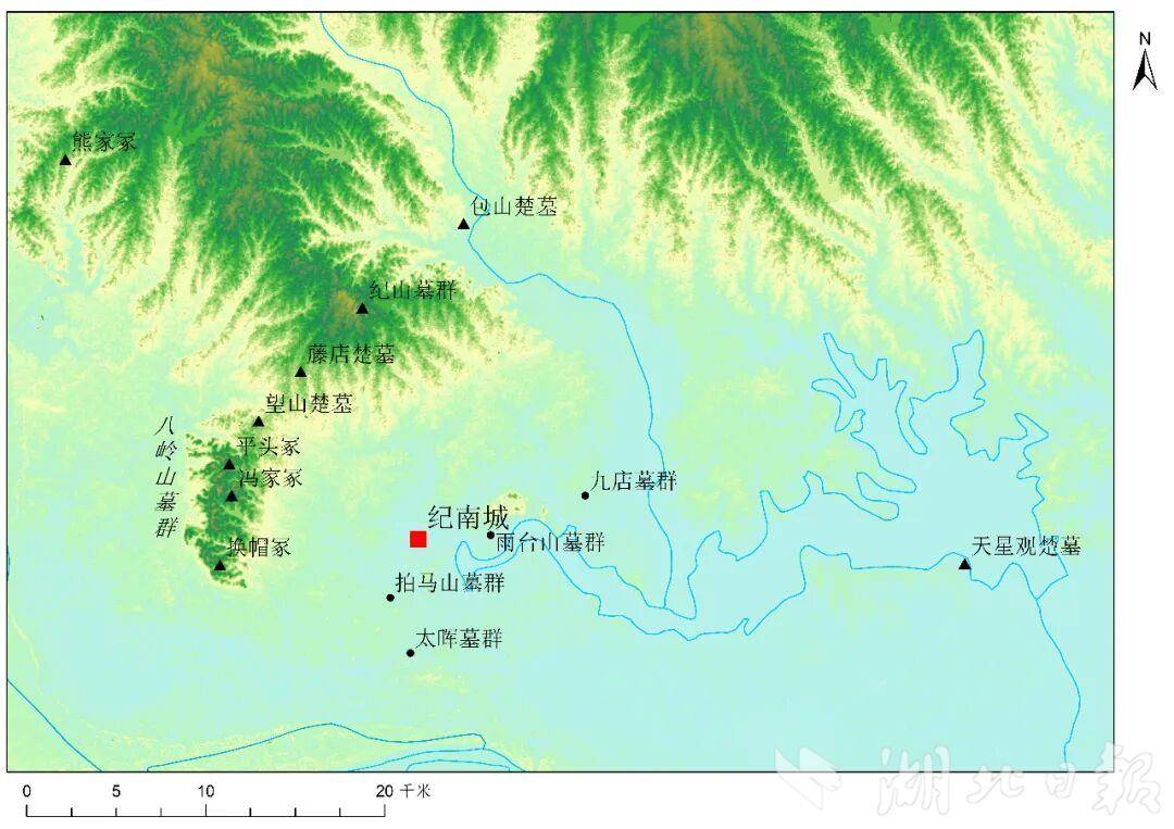 纪南城遗址周边主要墓地分布图