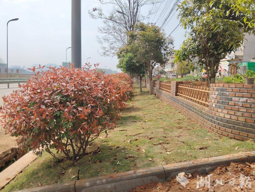 目前,首批工程已初见成效:在已完成施工的南侧路段,60株冠高2米的红叶石楠整齐列植,600平方米马尼拉草坪铺就绿茵,更搭配栽种了各类花卉1000株,形成了错落有致的景观层次。