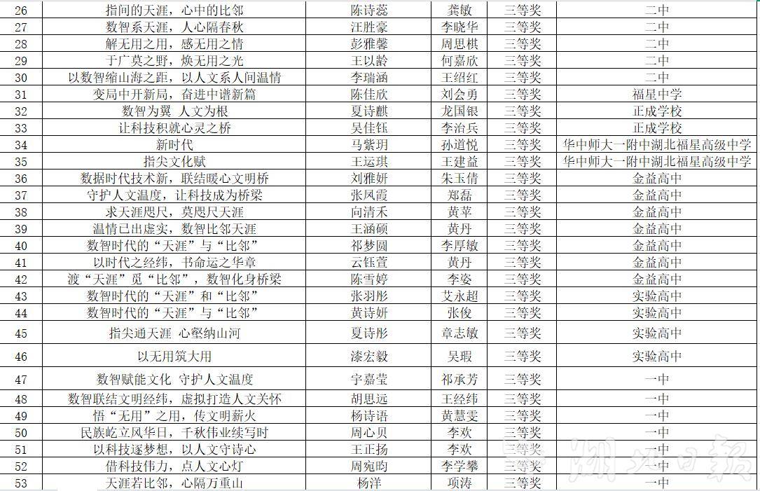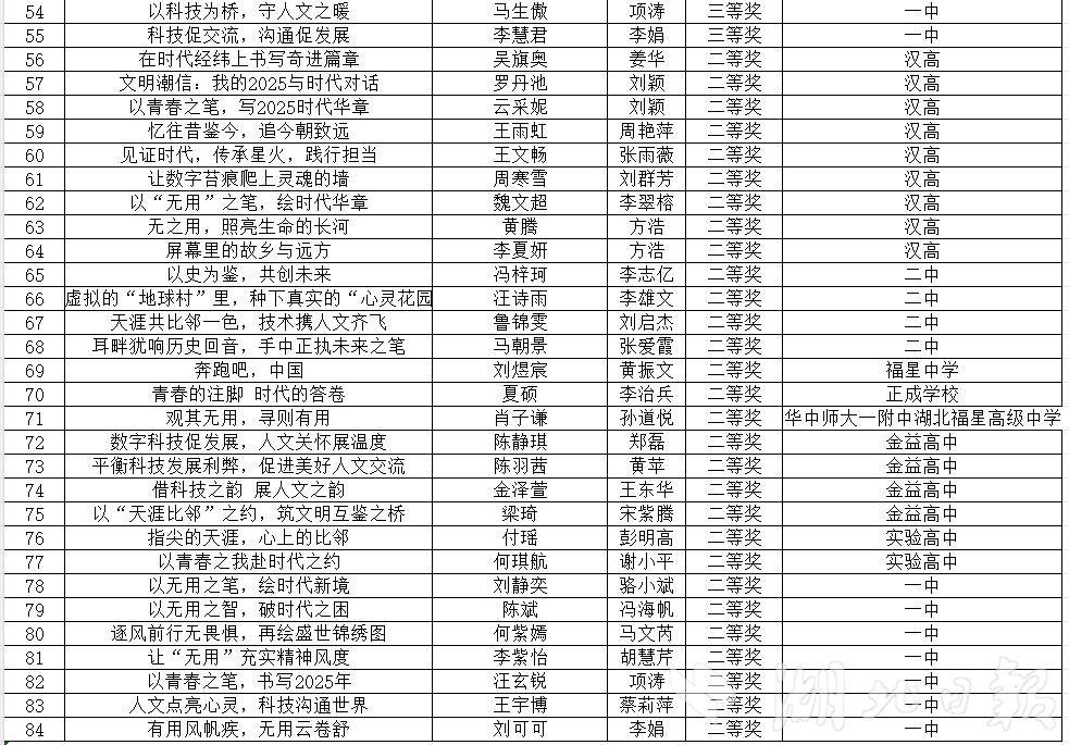湖北日报讯(记者王欣、通讯员李茂华、刘图彪)4月4日,第二十六届世界华人学生作文大赛获奖结果公布,汉川市84名高中学生的作文在全球众多参赛作品中脱颖而出,分别荣获一等奖12个、二等奖29个、三等奖43个。