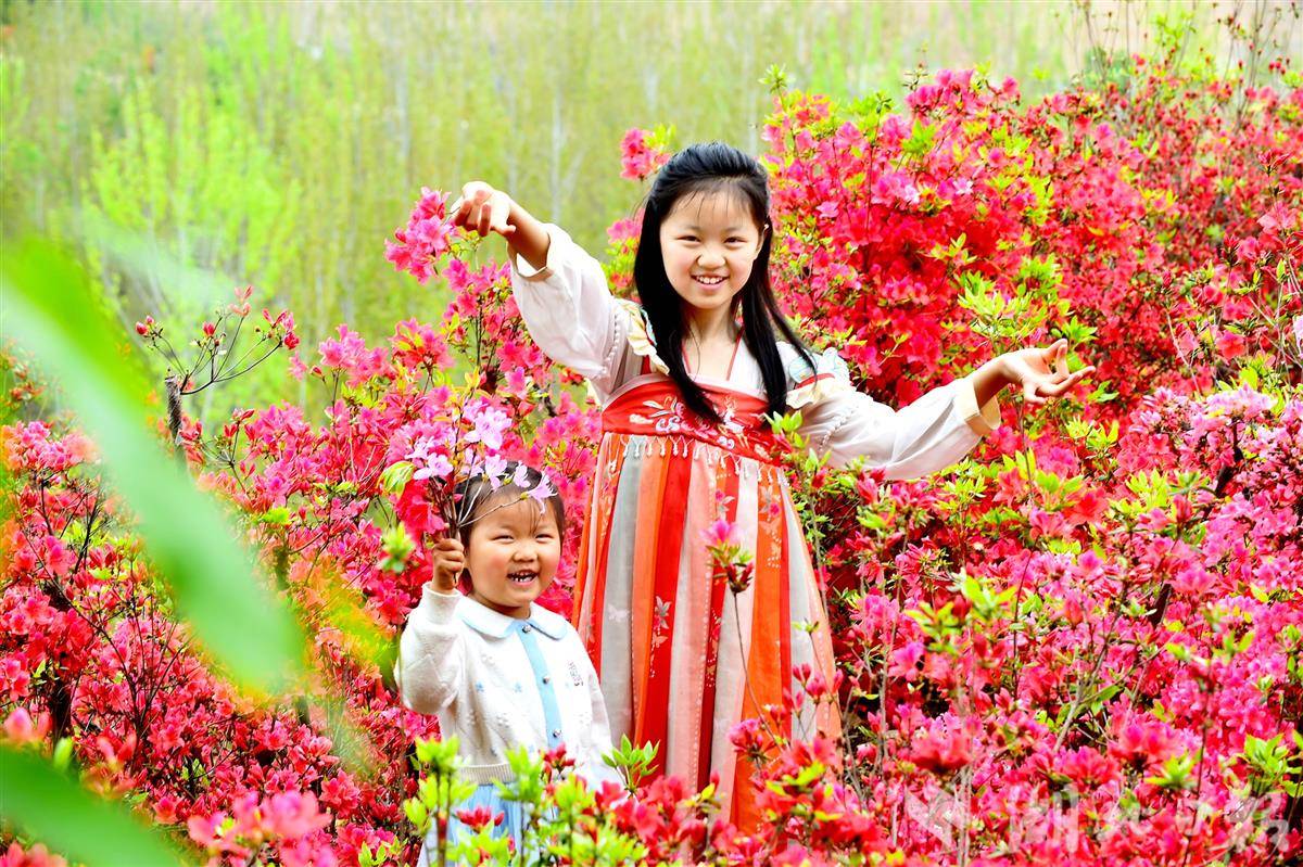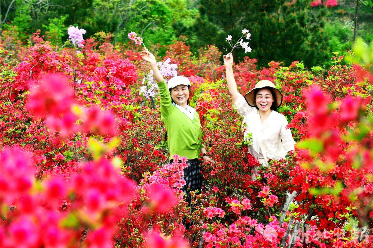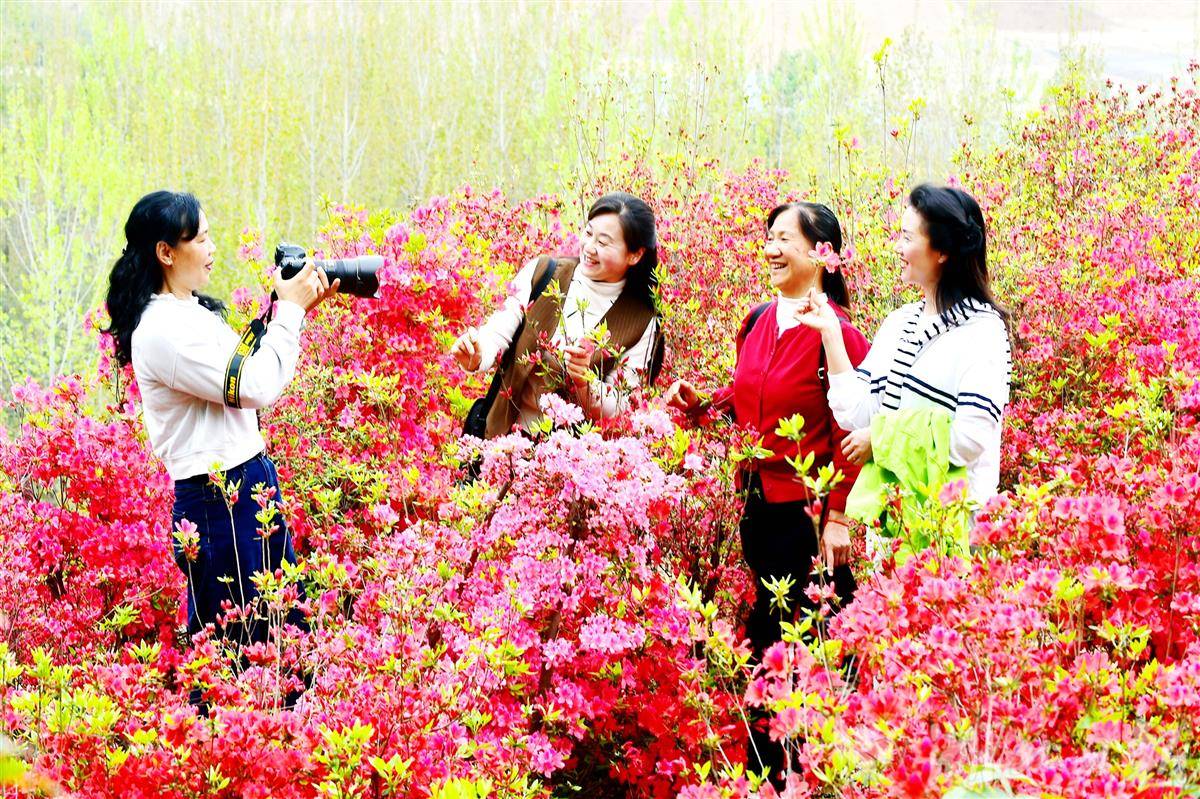 漫山遍野的杜鹃花正值盛花期,吸引了大量游客前来赏花拍照。