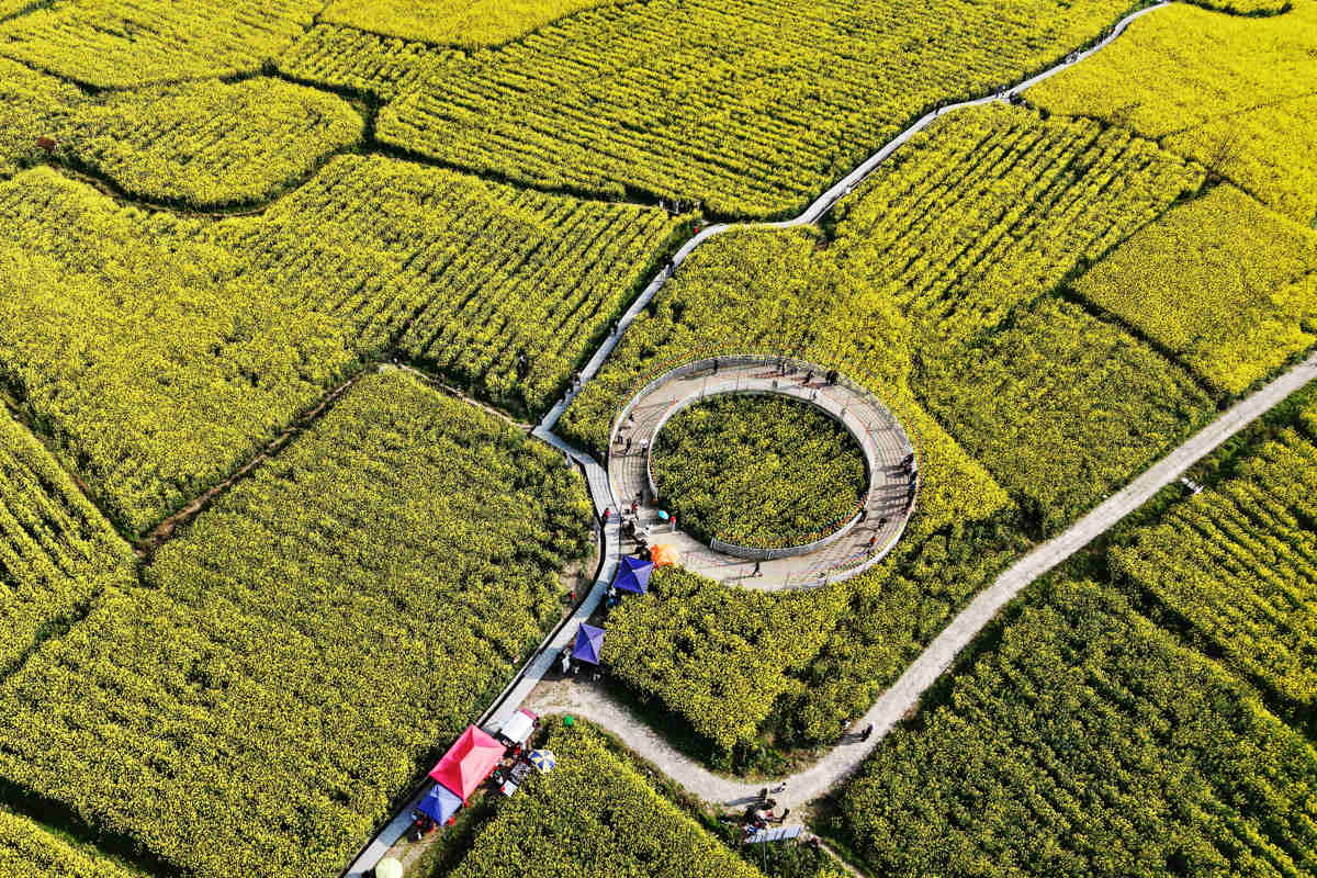 油菜盛花期,田间“醉美大路坝 风情小南海”十个红色大字,成为鄂渝边区最具辨识度的特色地标,吸引着八方游客前来赏花打卡。