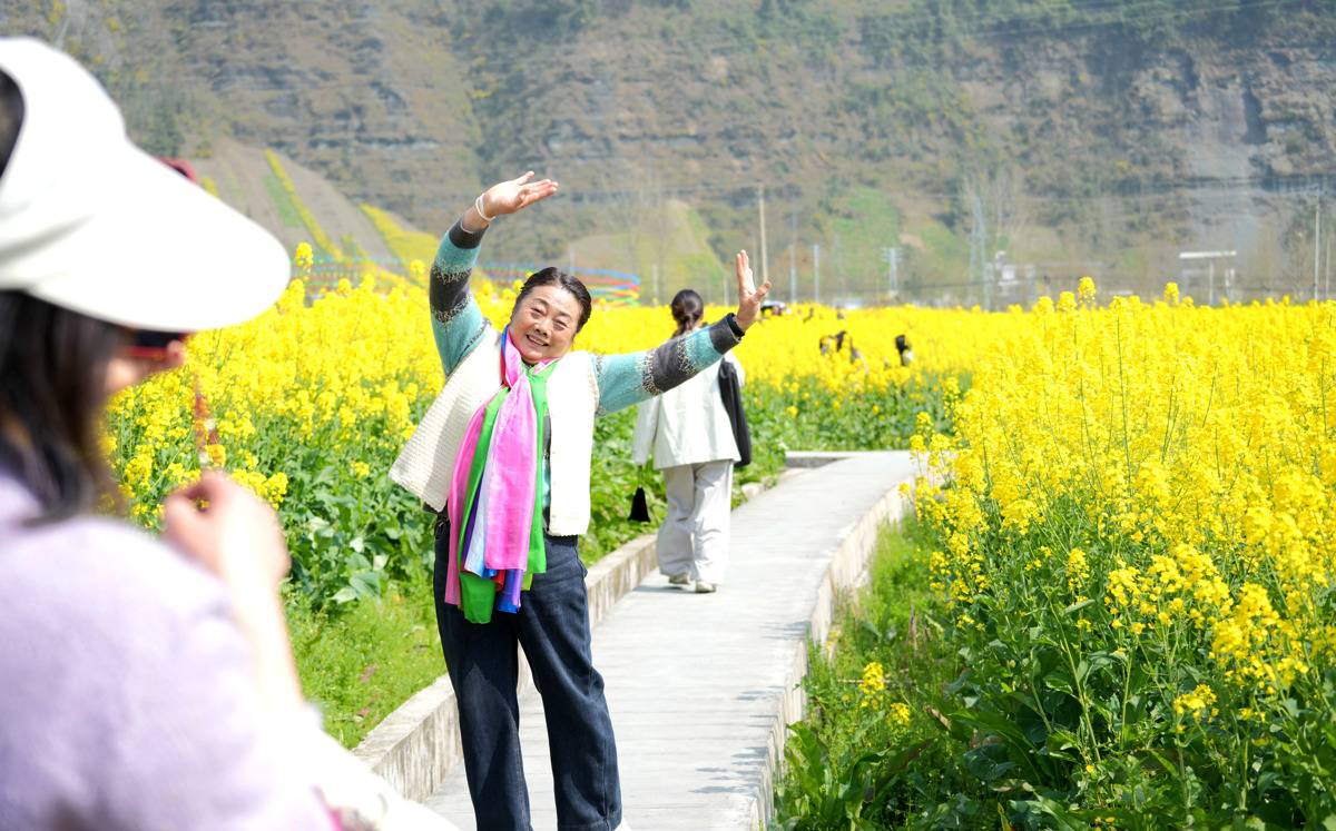 “金黄的花海配上青山绿水,拍照特别出片,满满的都是春天的味道。”游览完油菜花海后,来自甘肃的游客岳娜娜感叹。