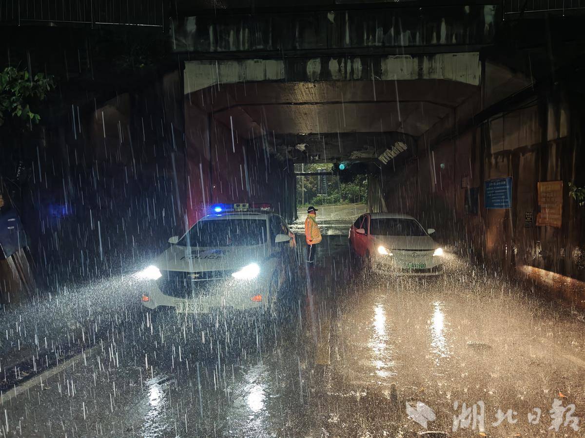 极端天气导致部分路段出现积水,给群众出行带来安全隐患。武汉公安联合水务、城管等部门,通过多点位巡查、积水排查、源头疏导等方式,全方位防范化解积水风险,确保群众通行安全。江夏区交通管理大队于9日凌晨4时全员出动,提前抵达武昌大道沿线涵洞开展值守巡查,实时监测积水情况,及时提醒过往车辆谨慎通行。同日8时许,洪山区书城路文治街路口信号灯突发故障,导致车辆拥堵缓行,四中队中队长余军迅速带队赶赴现场,滂沱大雨中,民辅警不顾全身湿透,坚守路中央指挥疏导车流行人,引导车辆有序通行,直至信号灯完全恢复正常。