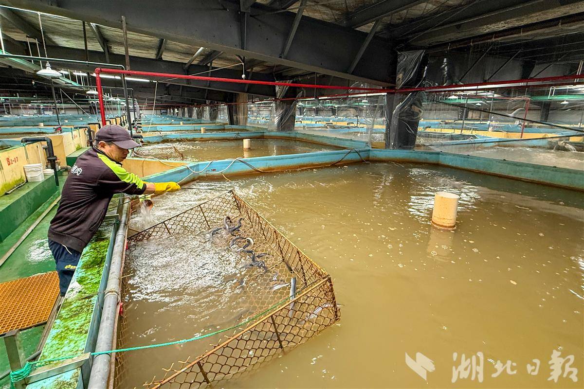 2026年4月8日,工作人员在基地内查看鱼苗生长情况。据介绍,武汉市东西湖区农投现代水产科技示范园盘活老对虾养殖基地,引入鳗鱼和鲈鱼苗培育项目。入驻团队携 20 年内陆养鳗成熟技术入驻,本地团队扎根园区实现华中规模化鲈鱼育苗。依托现成标准化设施,两大项目破解内陆高端水产养殖难题,填补市场缺口。(湖北日报全媒记者 倪娜 通讯员 方懿 徐卉婷 晏君 摄)