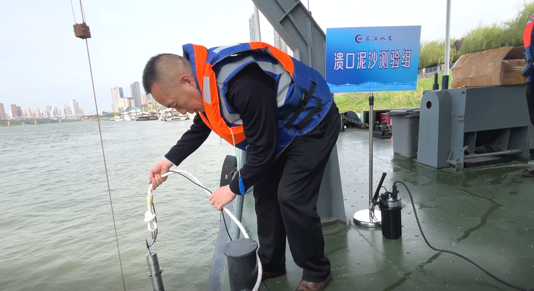 采用多维式光电在线测沙仪进行溃口泥沙监测,测验完成后及时上报成果。(受访单位供图)
