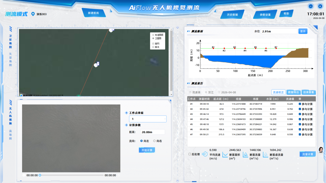 联合演练以2024年洞庭湖团洲垸溃口险情为场景,模拟汉江与长江中下游干流同时发生超标准洪水,两江洪水遭遇,汉江来水受长江高水位顶托,形成“汉江受长江倒灌顶托”的不利防洪态势。高水位持续浸泡后,在退水阶段汉江干堤某段发生管涌险情,并迅速发展为溃口。为研判溃口演变趋势、评估河道冲淤变化,急需获取溃口流量、口门宽度、溃口水位、含沙量等实时数据。