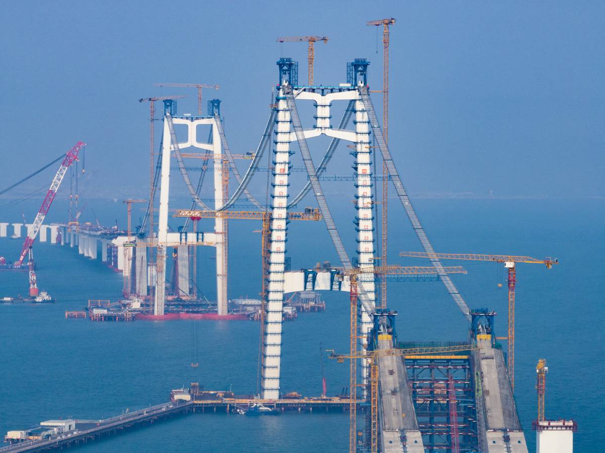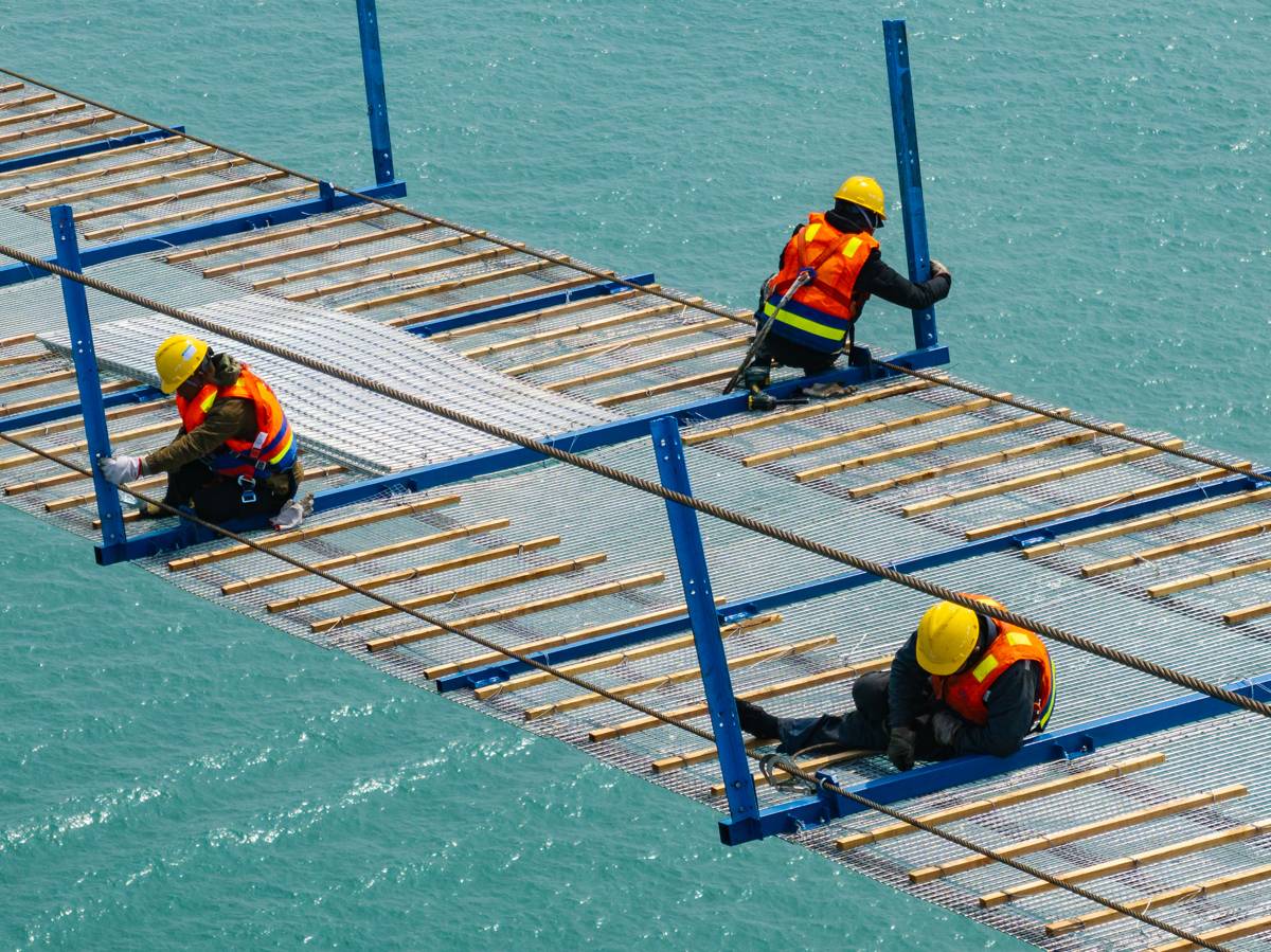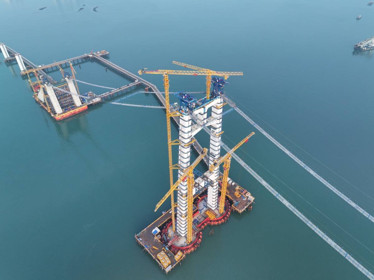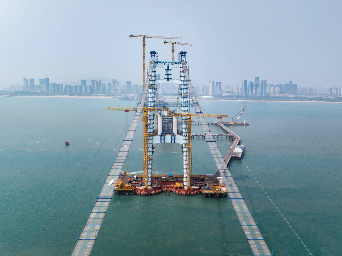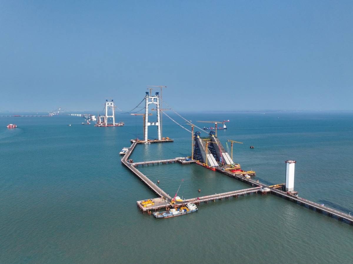 猫道架设面临海上施工环境复杂、风浪影响大、有效作业“窗口期”短等难题。项目团队引入智能监测系统,对风速、位移及结构受力情况进行实时监控。同时,强化高空作业安全防护,确保了猫道架设全过程安全可控。